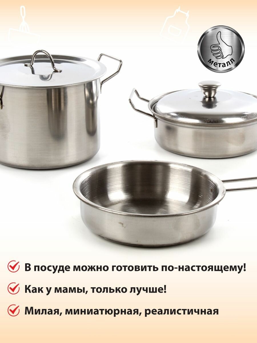 Купить Детский набор игрушечной металлической посуды, 7 предметов, Veld Co / Кухонный игровой набор для детей