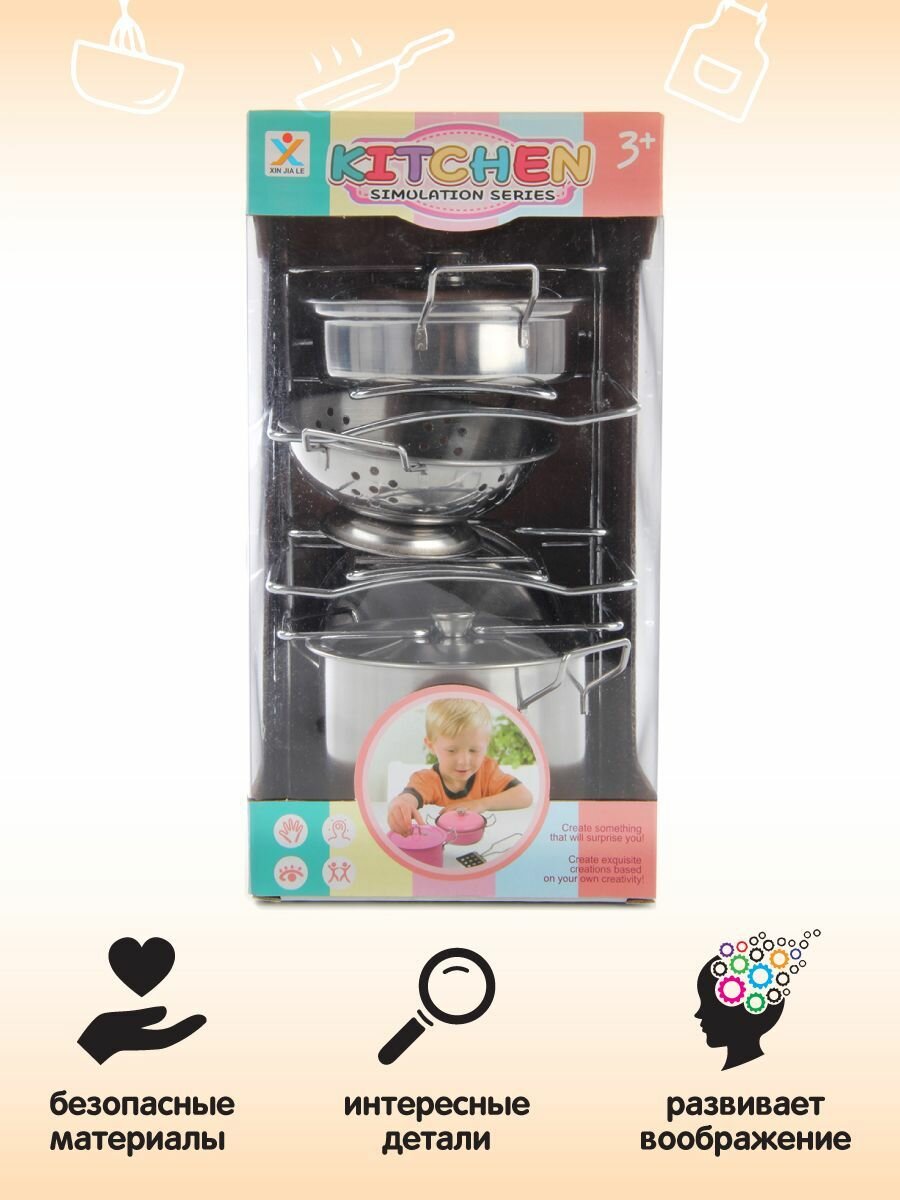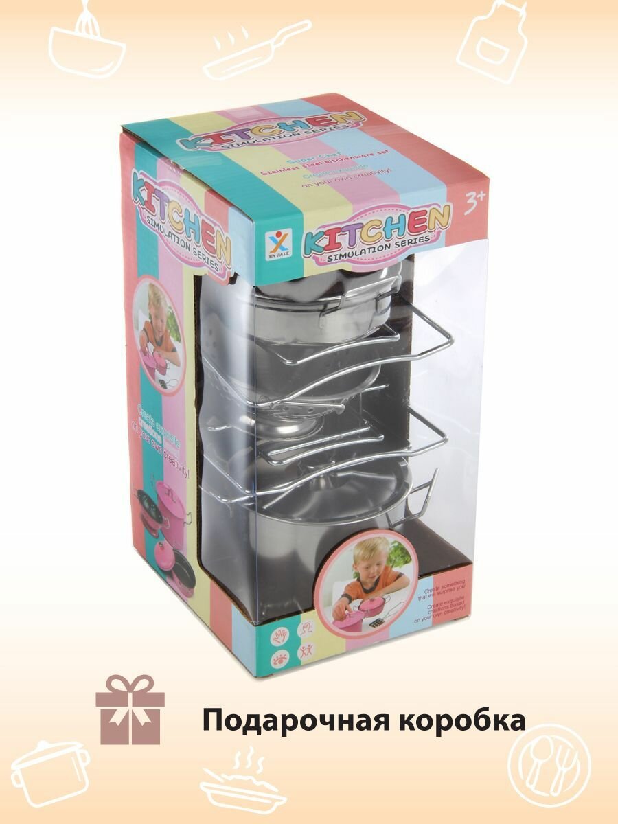 Детский набор игрушечной металлической посуды, 7 предметов, Veld Co / Кухонный игровой набор для детей интересное: