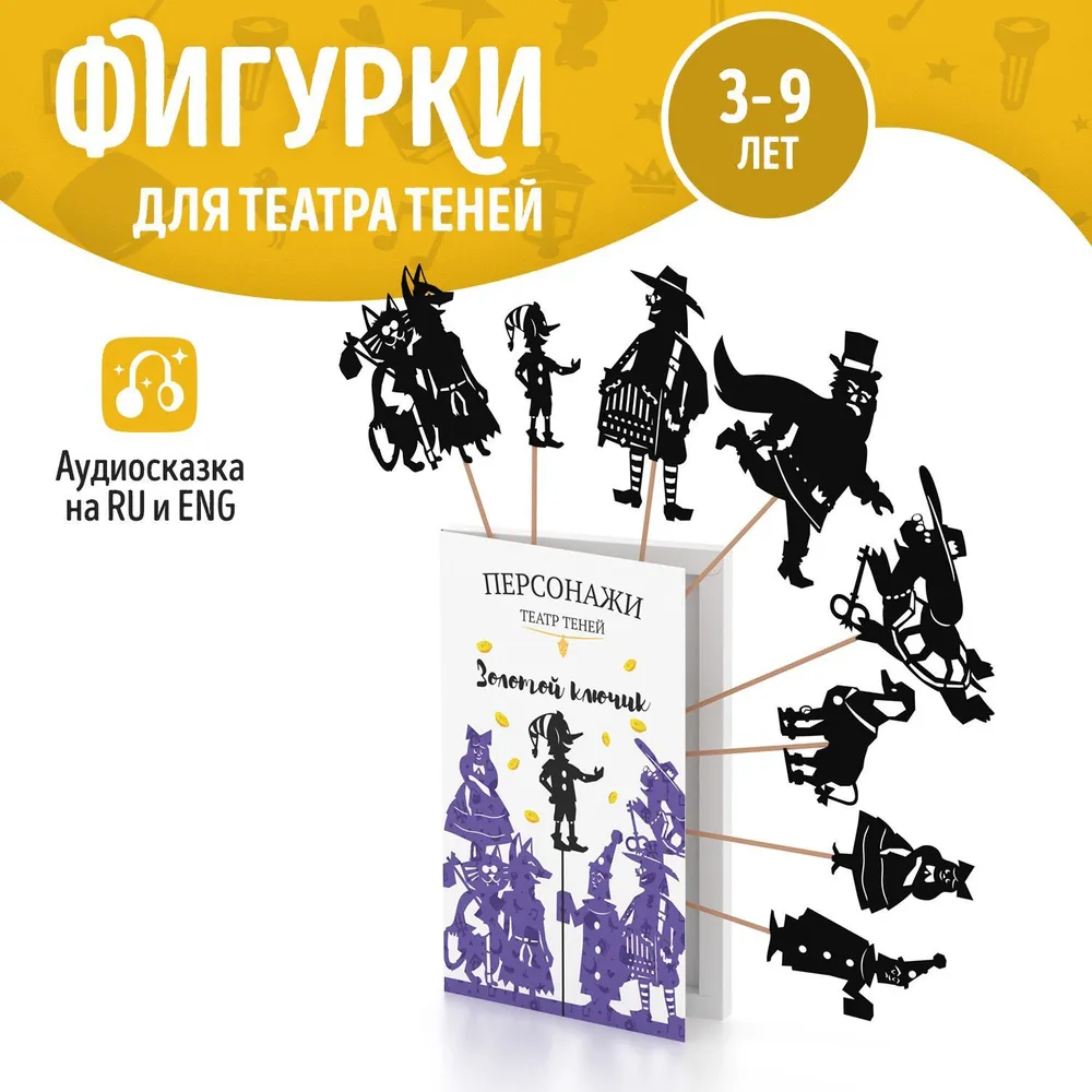 | Комплектация | Коробка в термопленке, сценарий, персонажи на палочках, подставка для телефона, QR-код на аудиокнигу. |