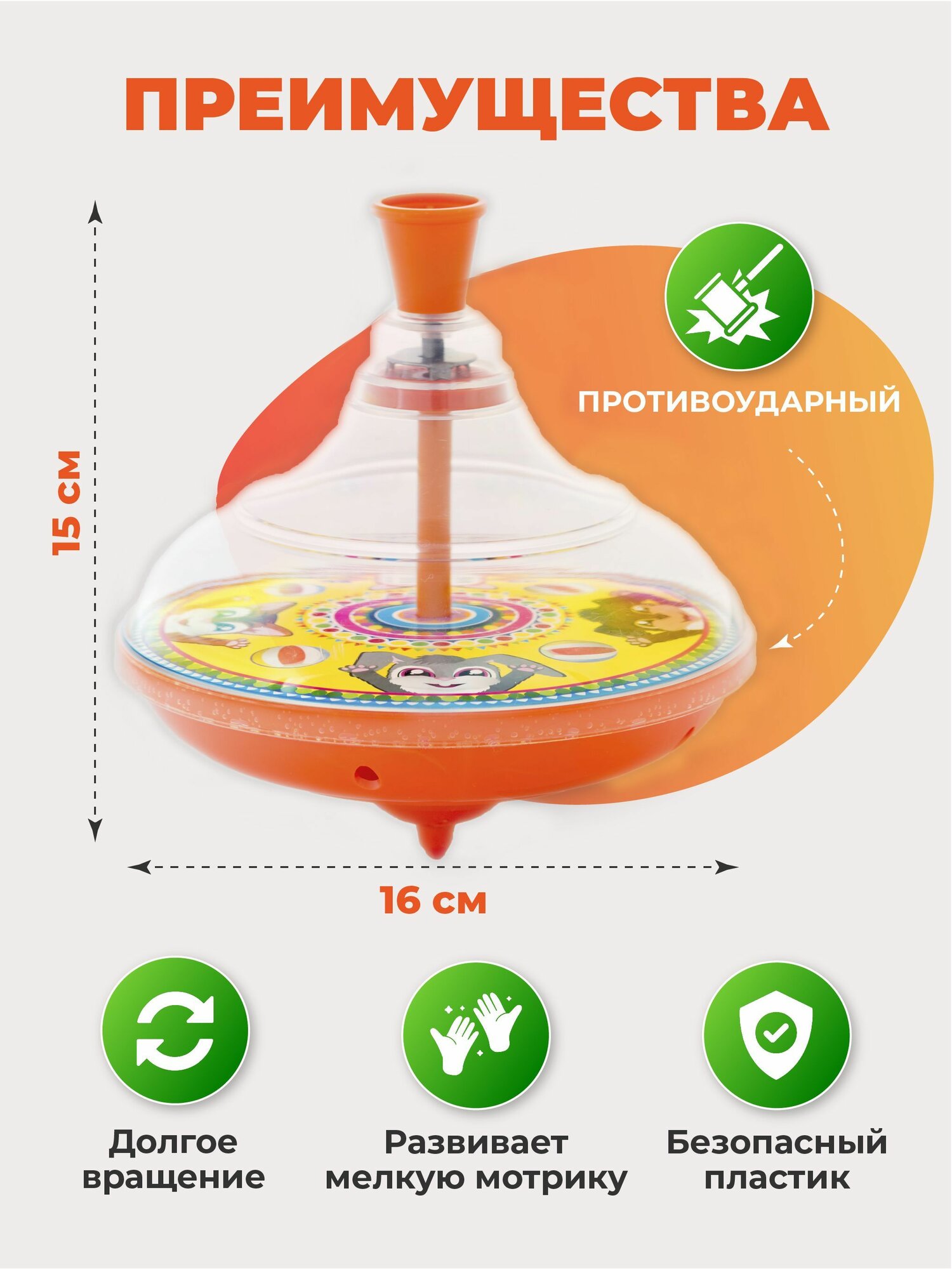 Юла Пеликан "Весёлые зверята", 15.5*14.5 см интересное:
