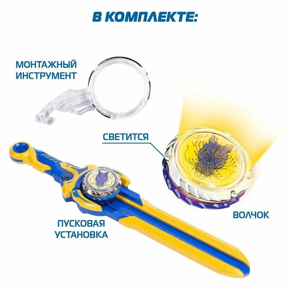 Боевой волчок ULTRASPIN, волчок, устройство для запуска с хватом, цвета микс