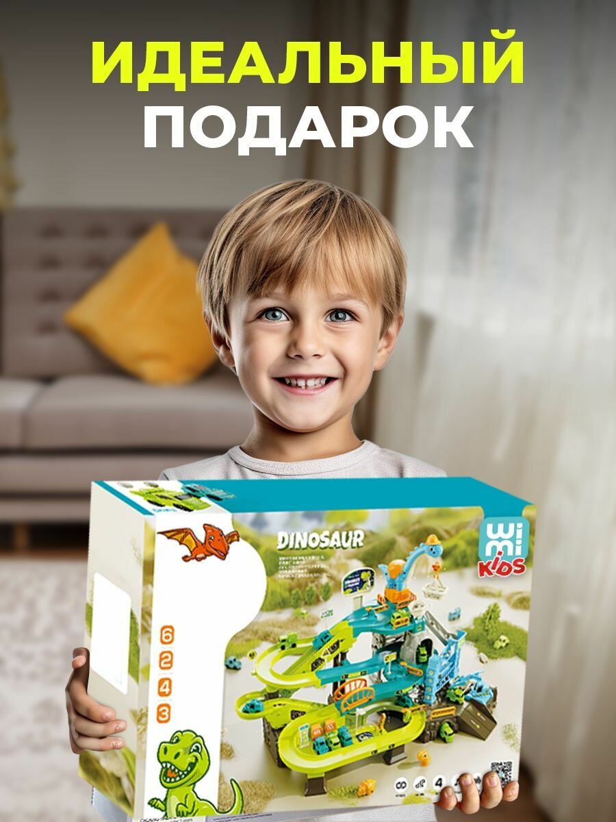 Купить Многоуровневая парковка с машинками стройка WiMi и гоночный трек, в комплекте 4 строительные машинки, кран игрушка и экскаватор