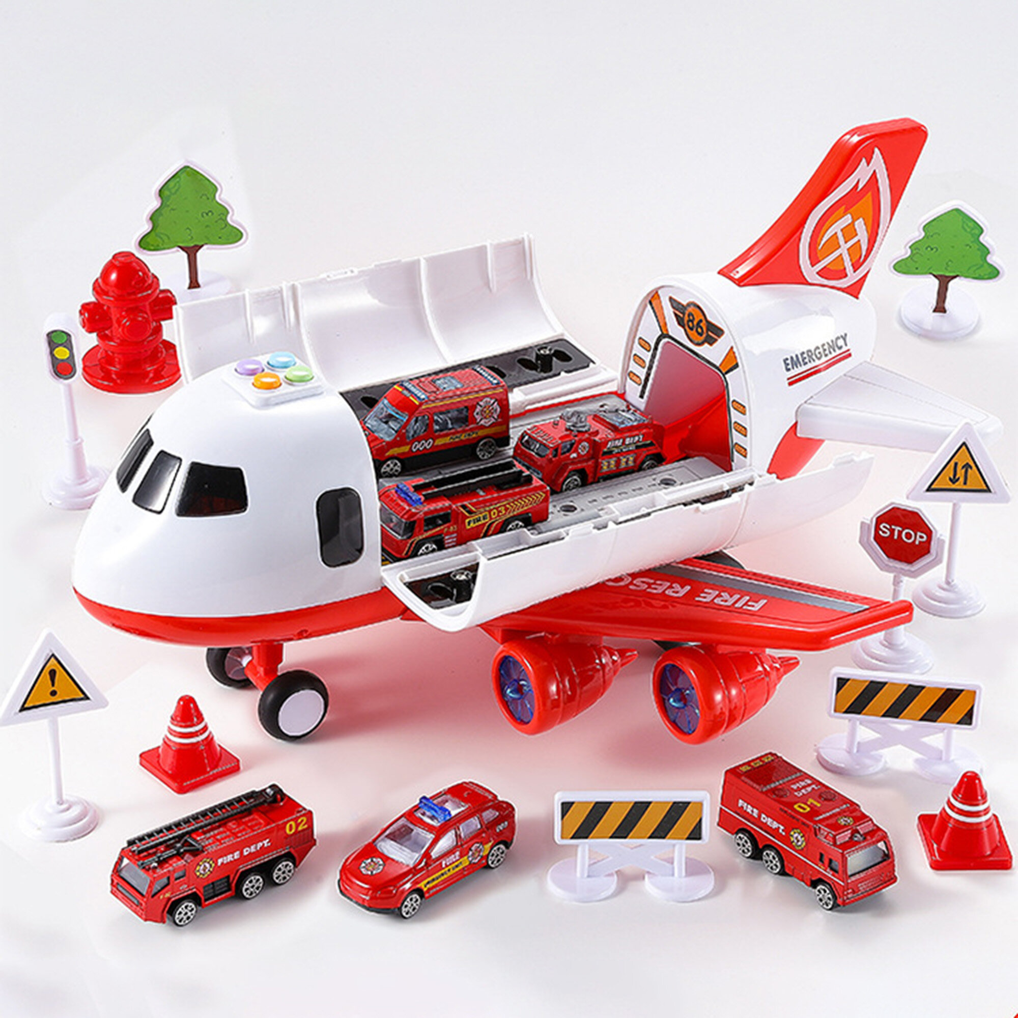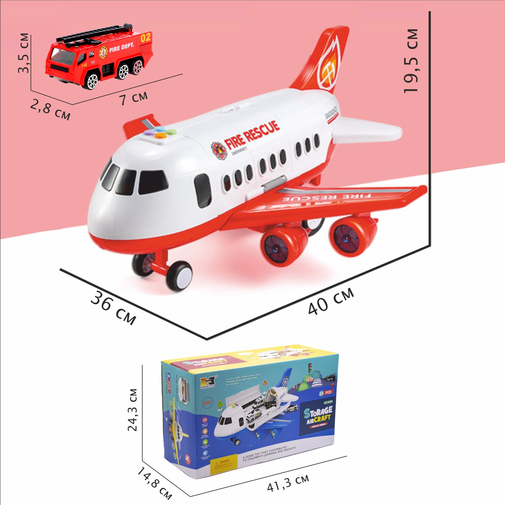| Комплектация | Самолёт парковка 1шт. Металлические машинки пожарная техника 6шт. Дорожные знаки и дополнительные аксессуары 12шт. |