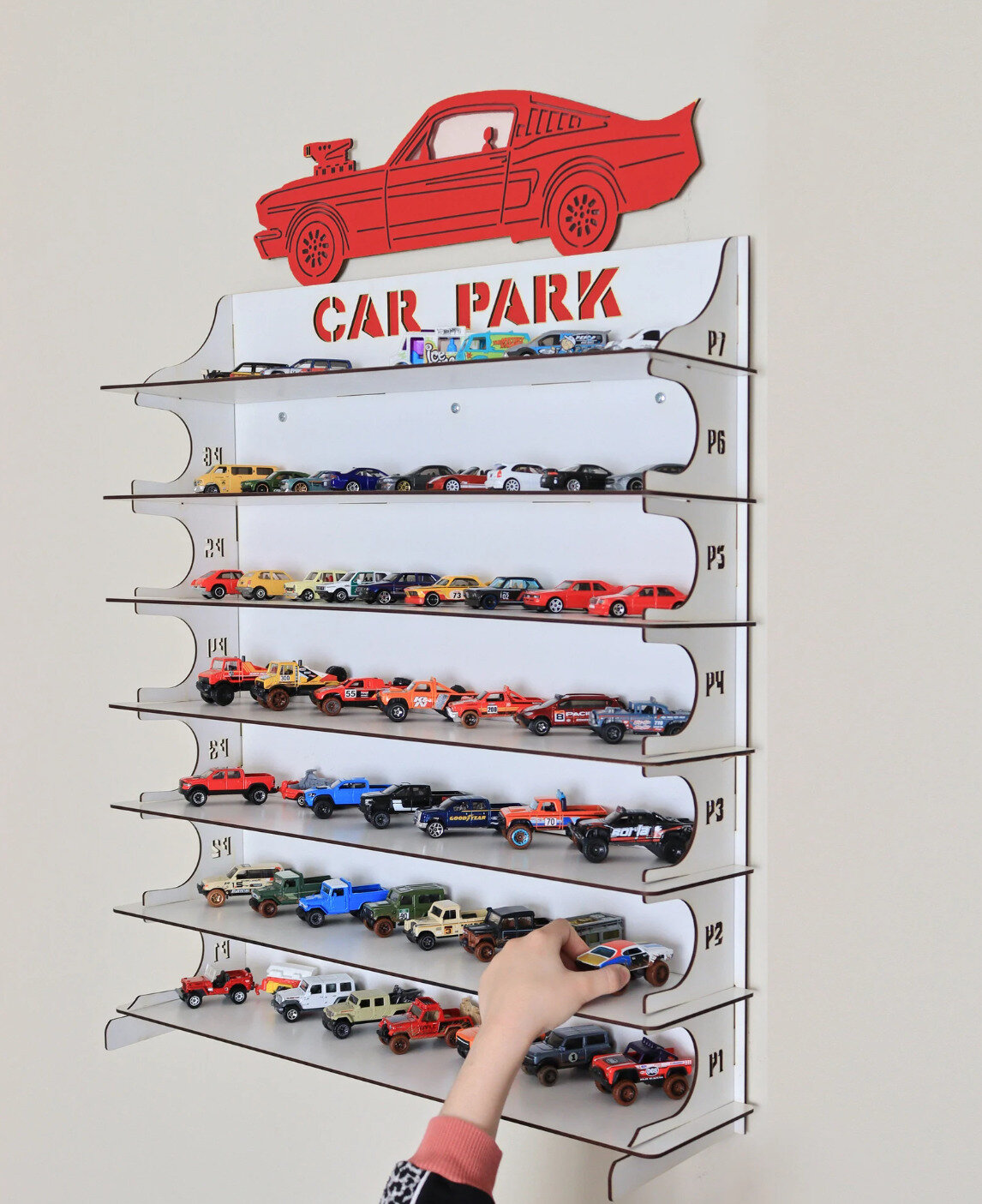 Купить Деревянная полка для коллекции машинок 1:64 / Парковка, гараж, паркинг настенная для моделек автомобилей