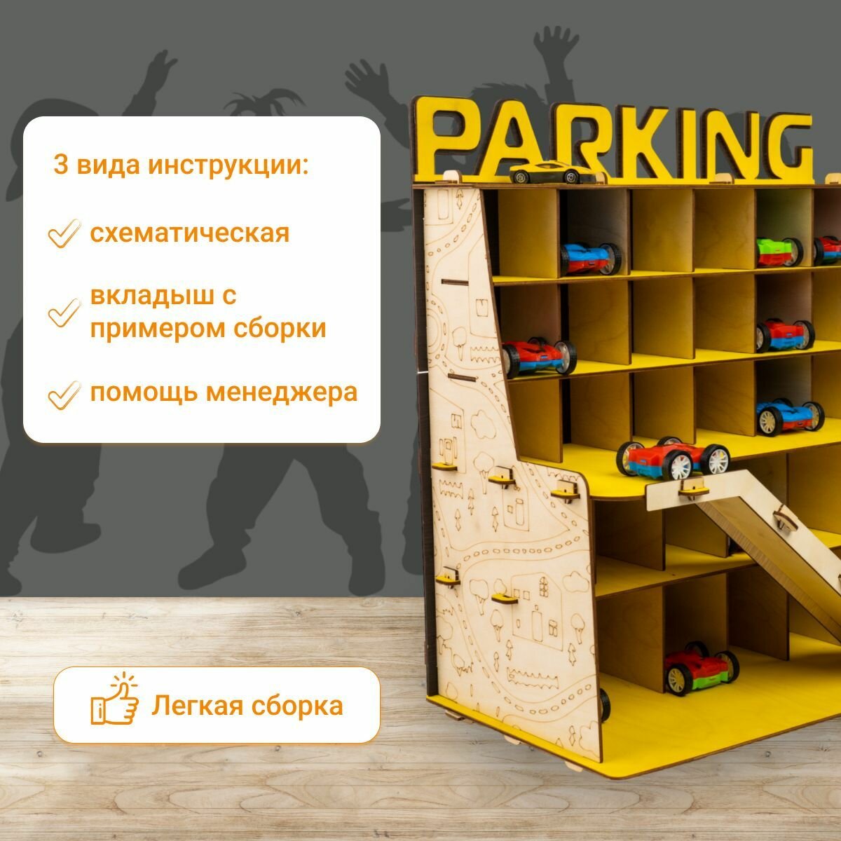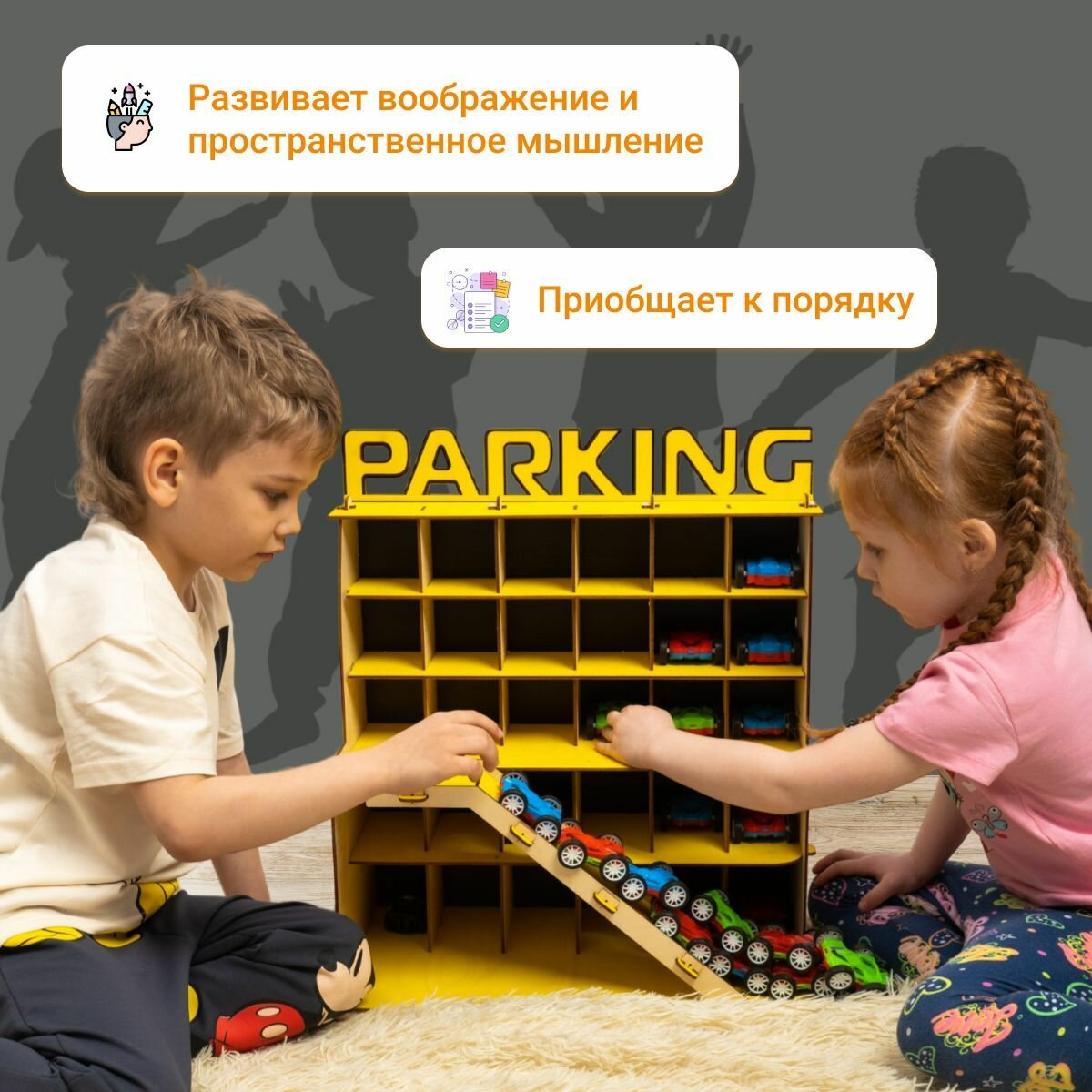 Деревянная парковка Гараж для машинок XXL полка для игрушек подарок на день рождения ребенку