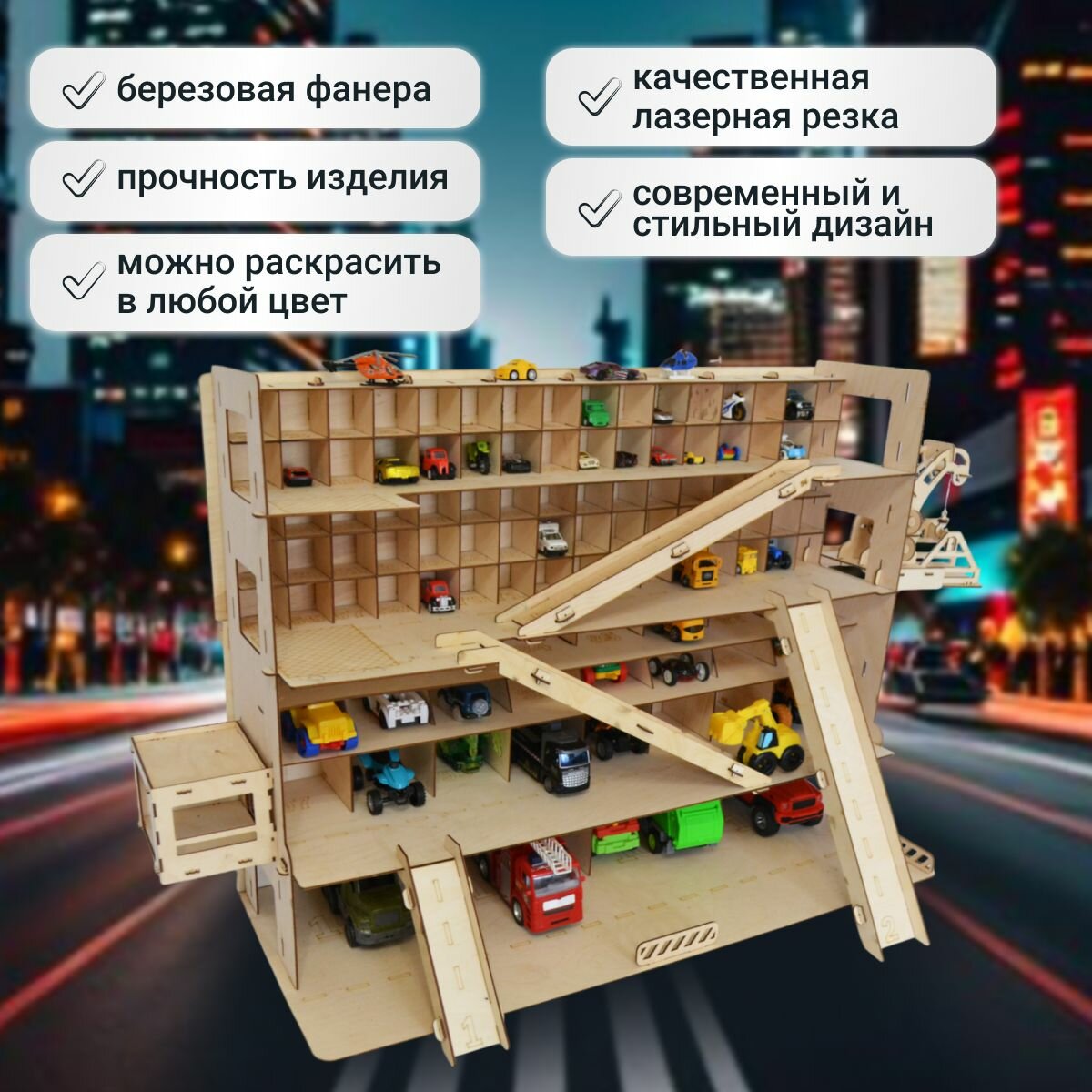 Деревянная парковка Гараж для машинок XXXL полка для игрушек подарок на день рождения ребенку