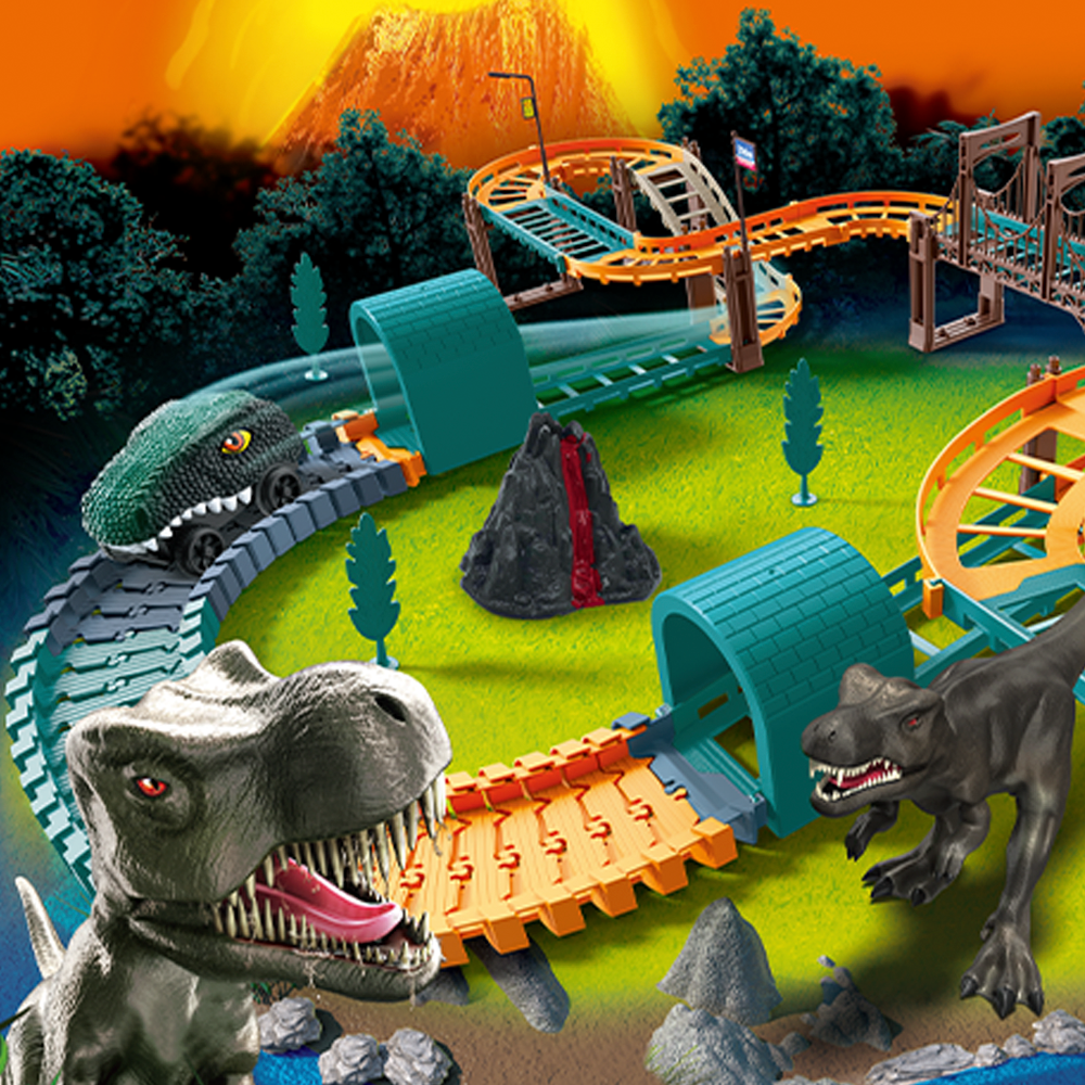 Купить Автотрек с машинкой, Динотрек, 274 см, 50 деталей