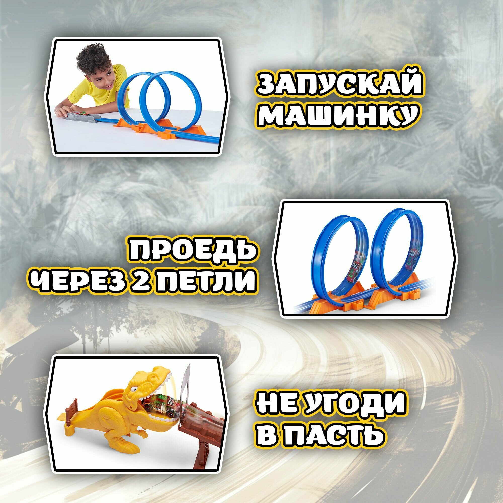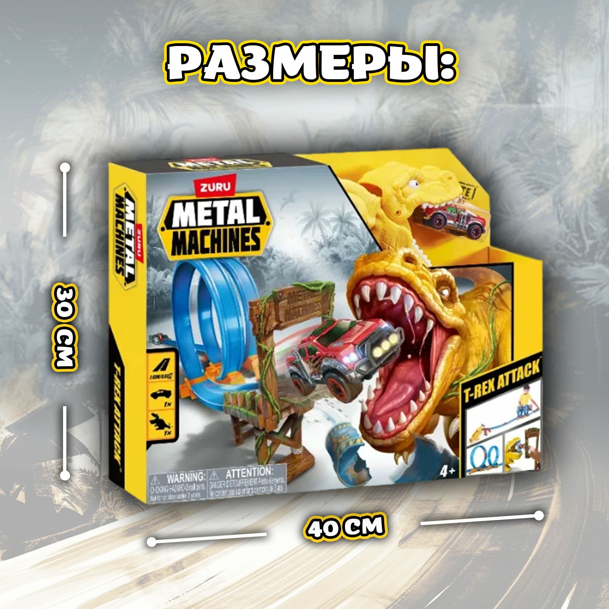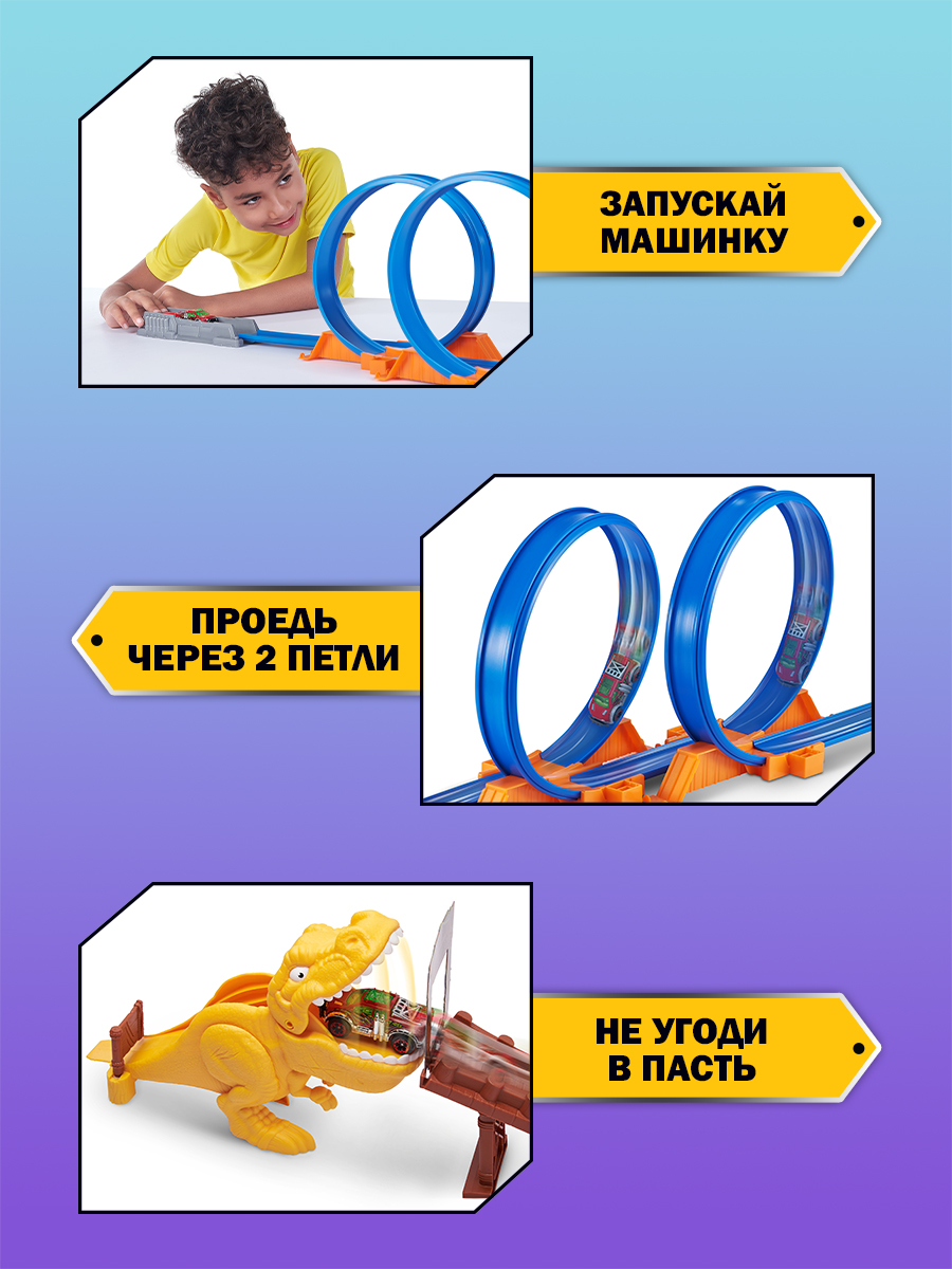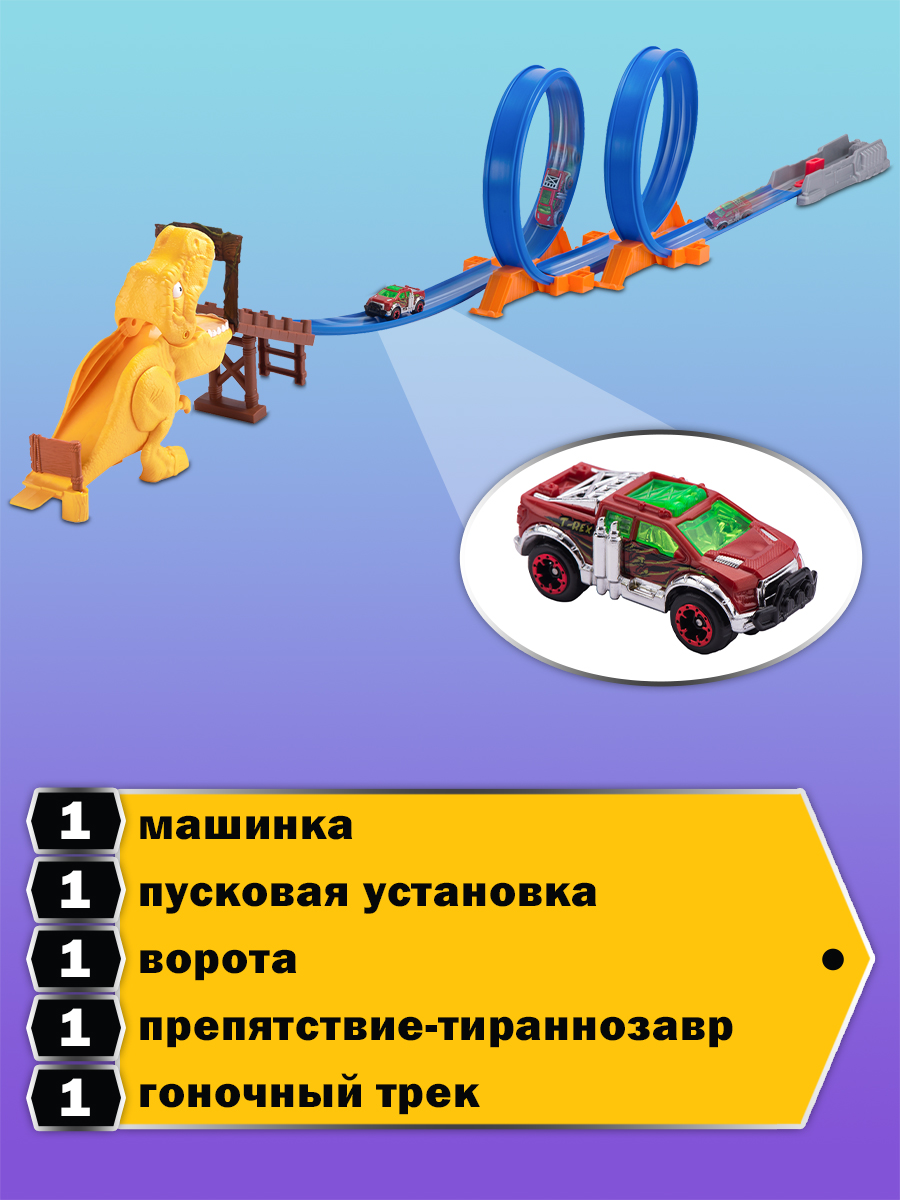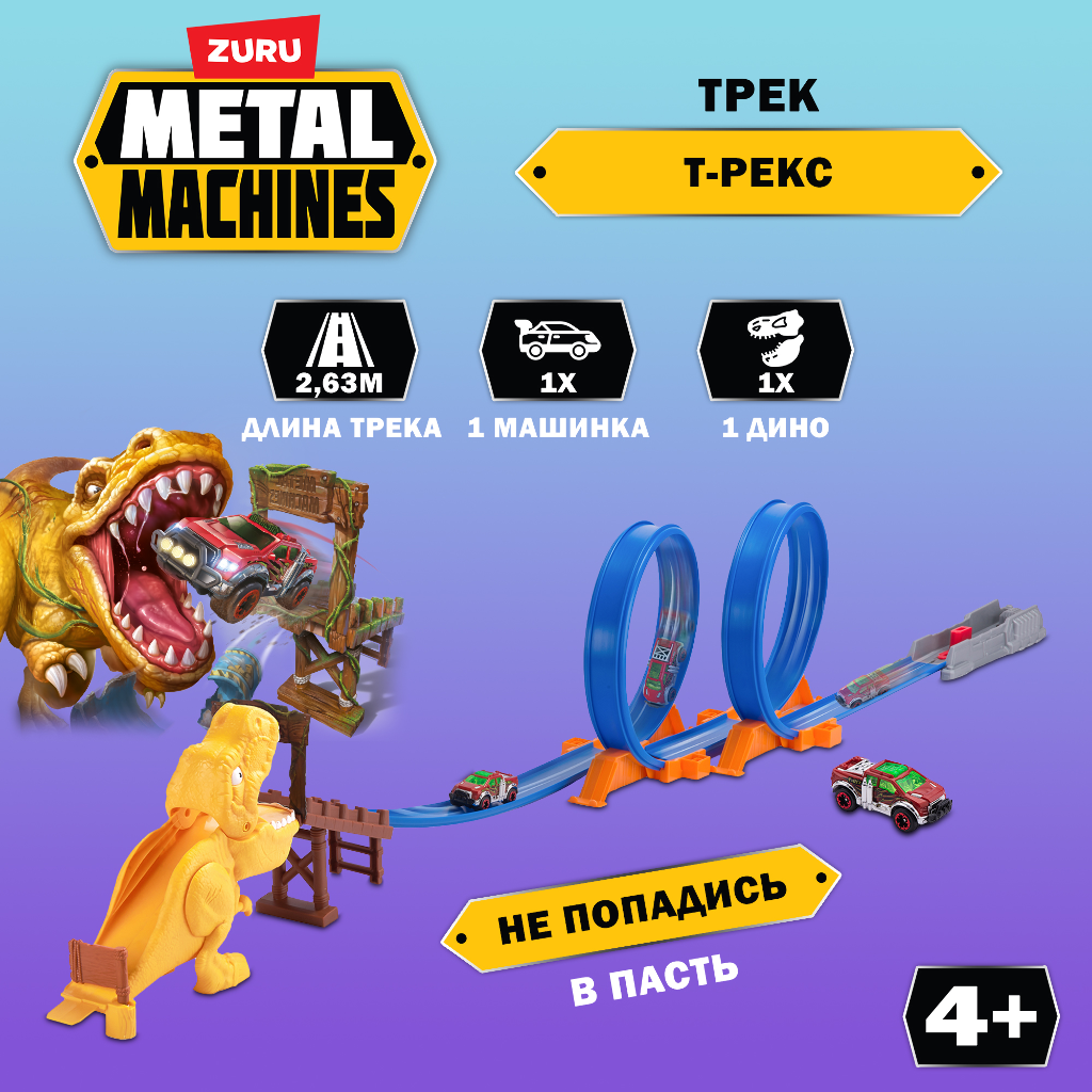 Игровой набор гоночный трек ZURU METAL MACHINES Динозавр Т-Рекс, 1 машинка в комплекте, длина трека 2,63 м, игрушка для мальчика, 6702 интересное: