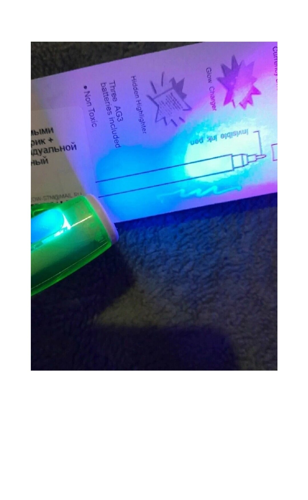 Ниже Вы можете прочитать отзывы на Ручка-шпион с невидимыми чернилами + ультрафиолетовый фонарик + шариковая ручка фиолетовая, ознакомится с подробными характеристиками, посмотреть интересные обзоры и фотографии на Ручка-шпион с невидимыми чернилами + ультрафиолетовый фонарик + шариковая ручка фиолетовая.