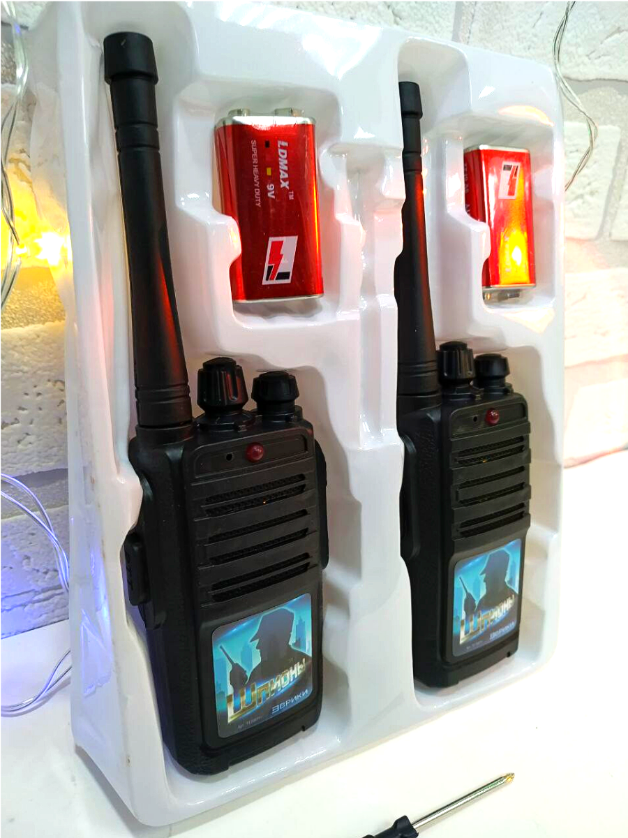 | Комплектация | 2 рации, 2 батарейки, отвертка |