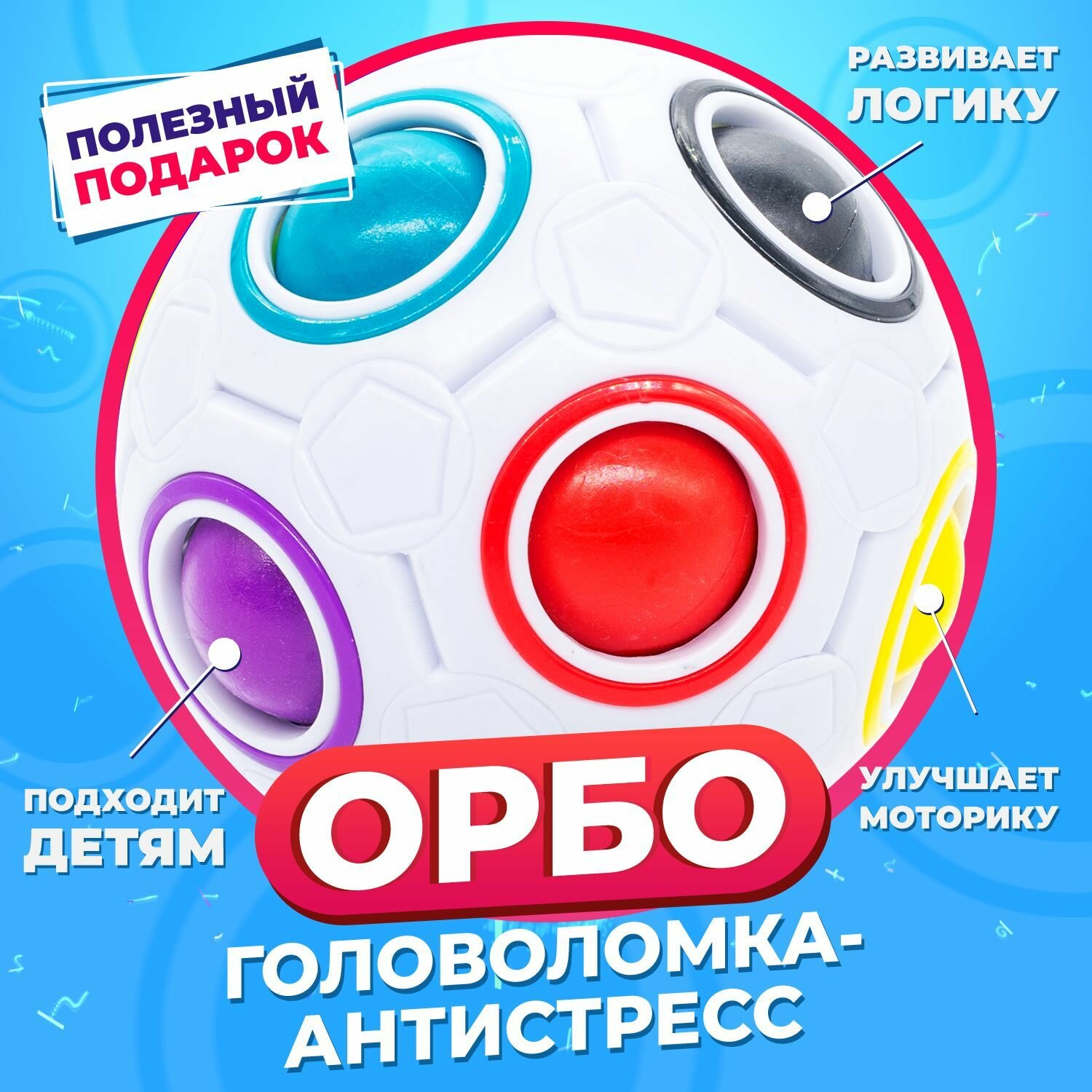 Орбо Шар для детей оригинал MoYu / Rainbow Ball 8 holes / Развивающая головоломка-антистресс