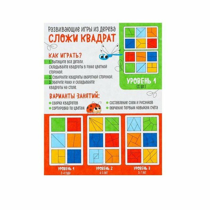 Головоломка геометрическая деревянная «Квадраты», 1 уровень (2 шт.), 12 квадратов