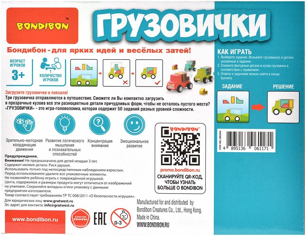 Ниже Вы можете прочитать отзывы на Развивающая головоломка для детей БондиЛогика Bondibon грузовички / Детская настольная логическая обучающая игра в подарок, ознакомится с подробными характеристиками, посмотреть интересные обзоры и фотографии на Развивающая головоломка для детей БондиЛогика Bondibon грузовички / Детская настольная логическая обучающая игра в подарок.