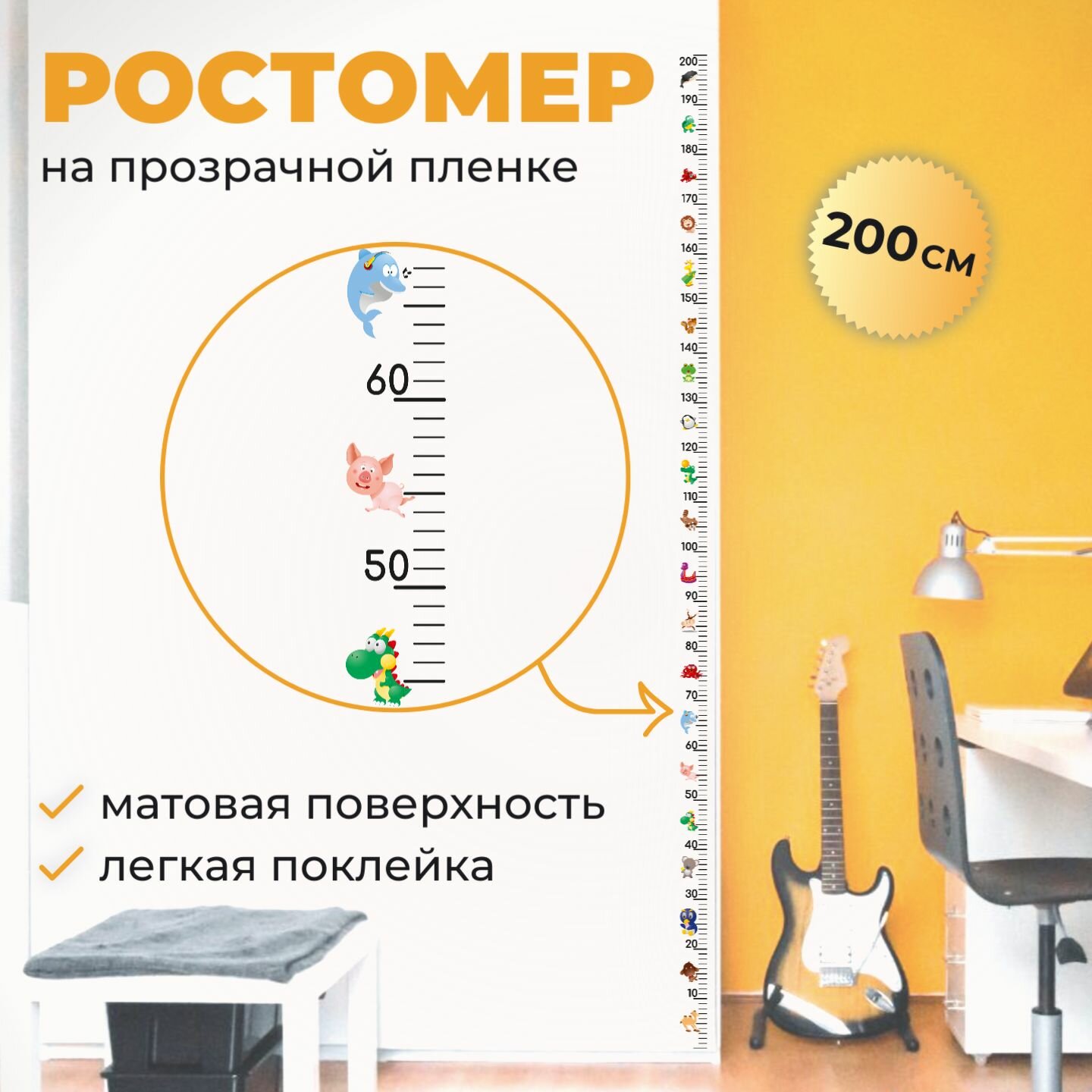 Ростомер детский с животными на прозрачной пленке унисекс, ростомер мальчику и девочке интересное:
