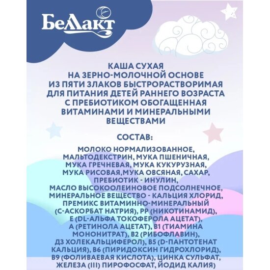 Каша Беллакт молочная 5 злаков с пребиотиком, с 6 месяцев, 250 г интересное: