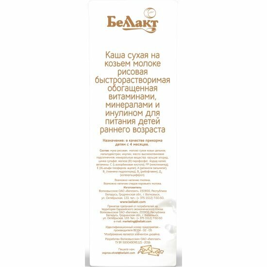 Каша Беллакт рисовая на козьем молоке 200 г интересное:
