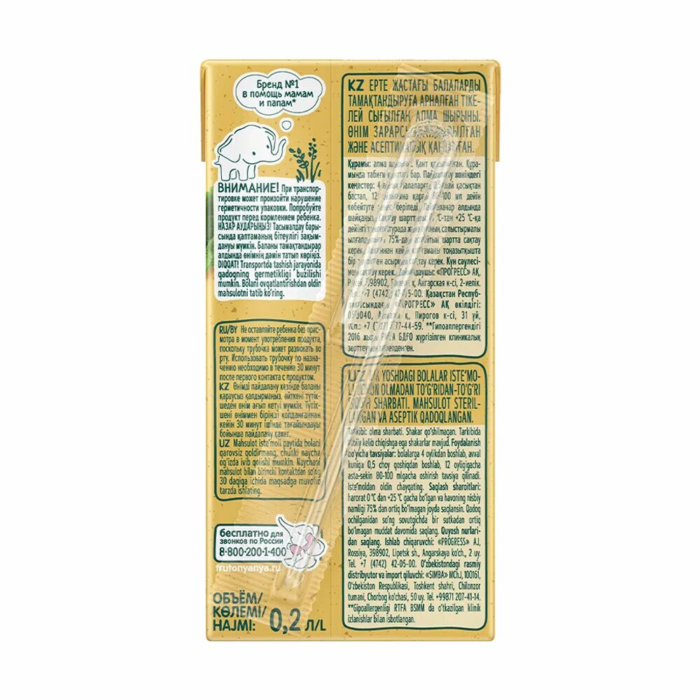 Сок ФрутоНяня яблочный прямого отжима, неосветленный с 4 месяцев 0,2 л 5 шт интересное: