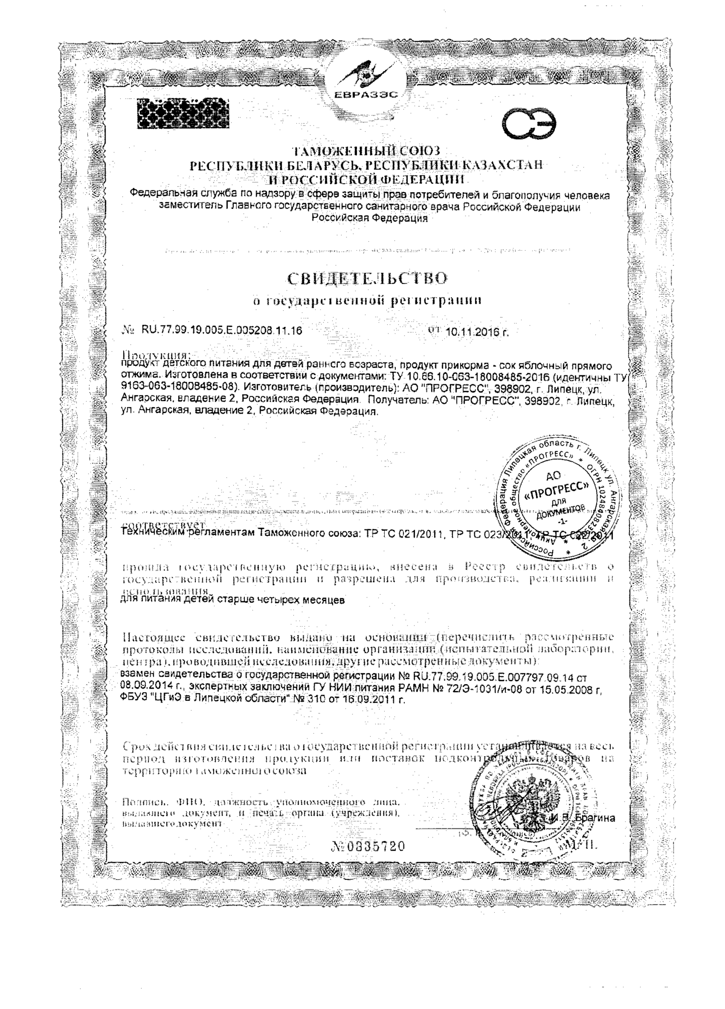 Сок Сады Придонья Зеленое яблоко (Tetra Pak), c 4 месяцев