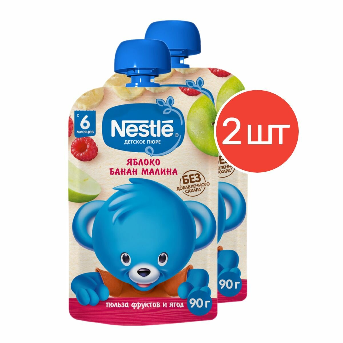 Купить Пюре Nestle яблоко-банан-малина в мягкой упаковке с 6 месяцев 90 г 2 шт