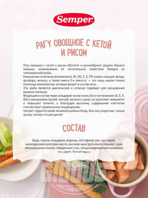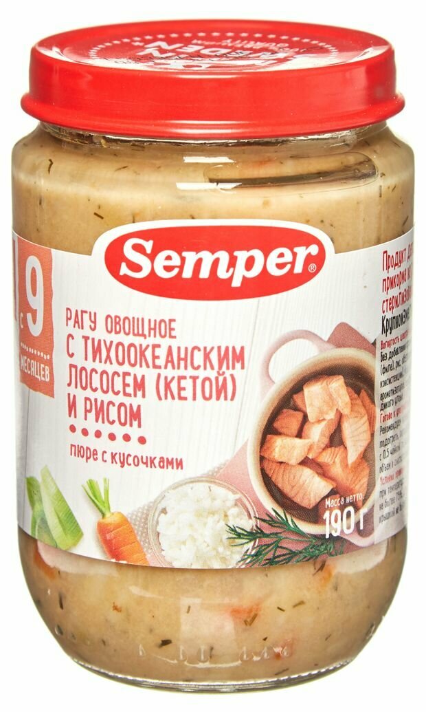 Semper - пюре рагу овощное с кетой и рисом , 9 мес., 190 гр интересное: