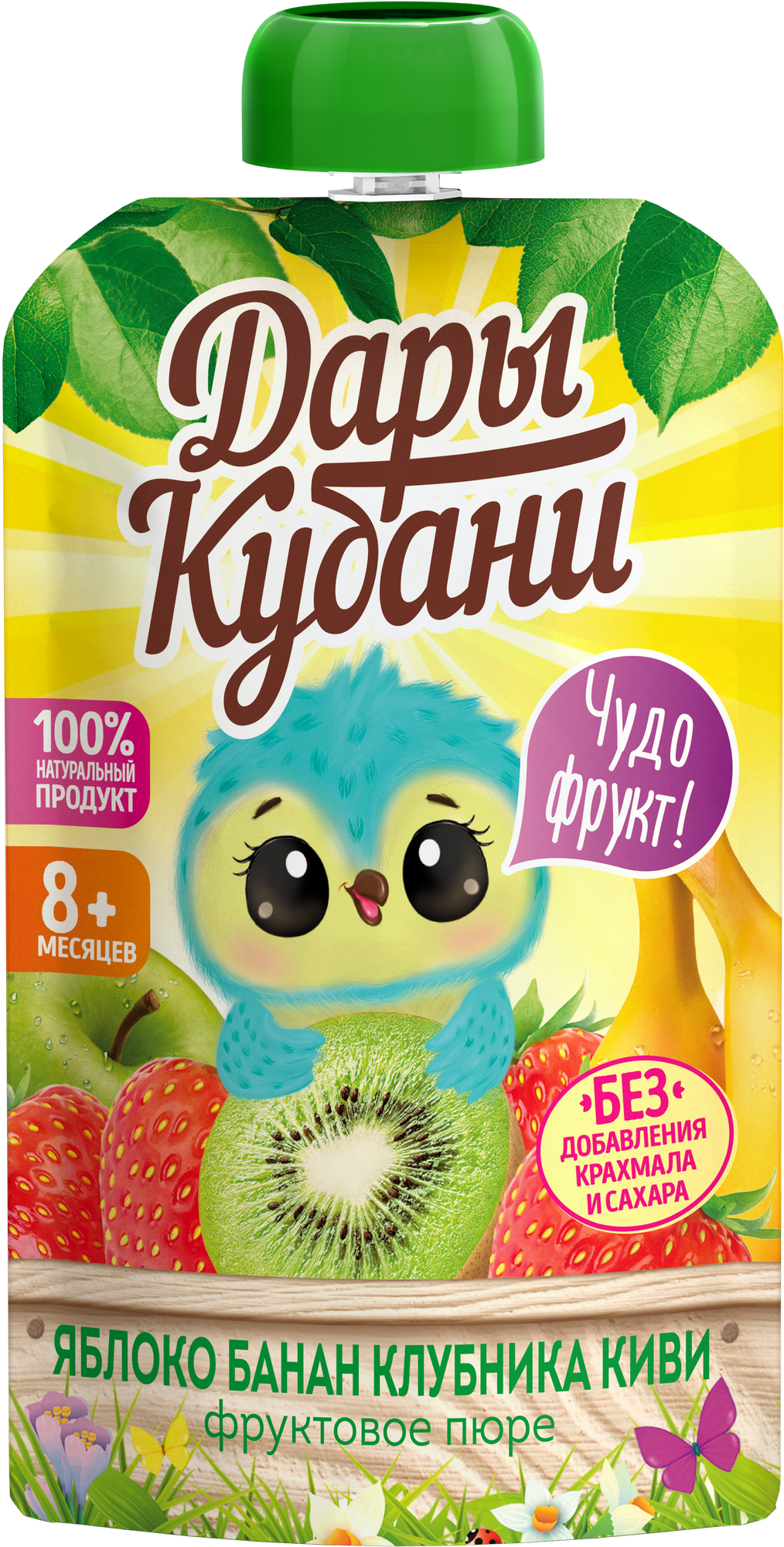 Купить Детское пюре Дары Кубани из яблок, бананов, клубники и киви, без сахара, для детей с 8 месяцев, 90 г х 12 шт.