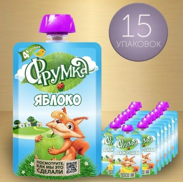 Пюре Фрумка яблоко, с 4 месяцев, 90 гр., 15 шт. интересное: