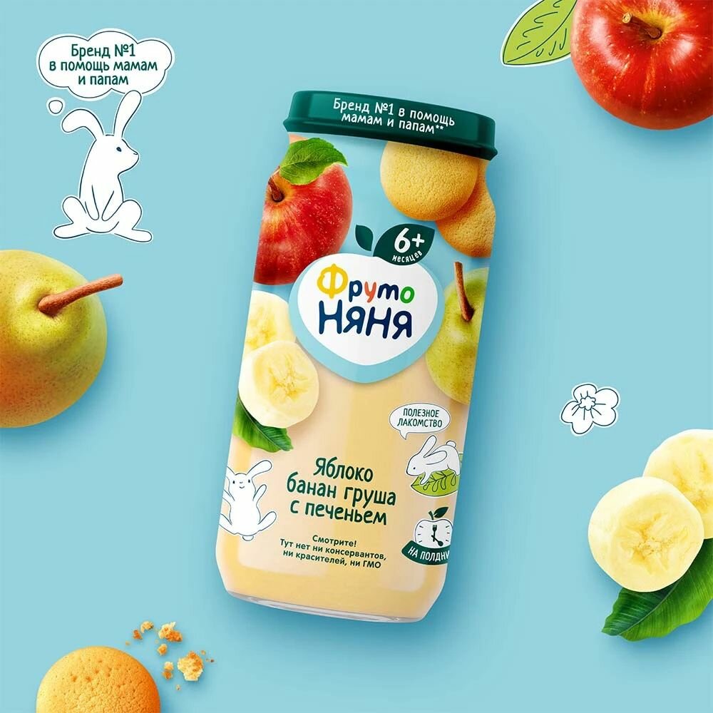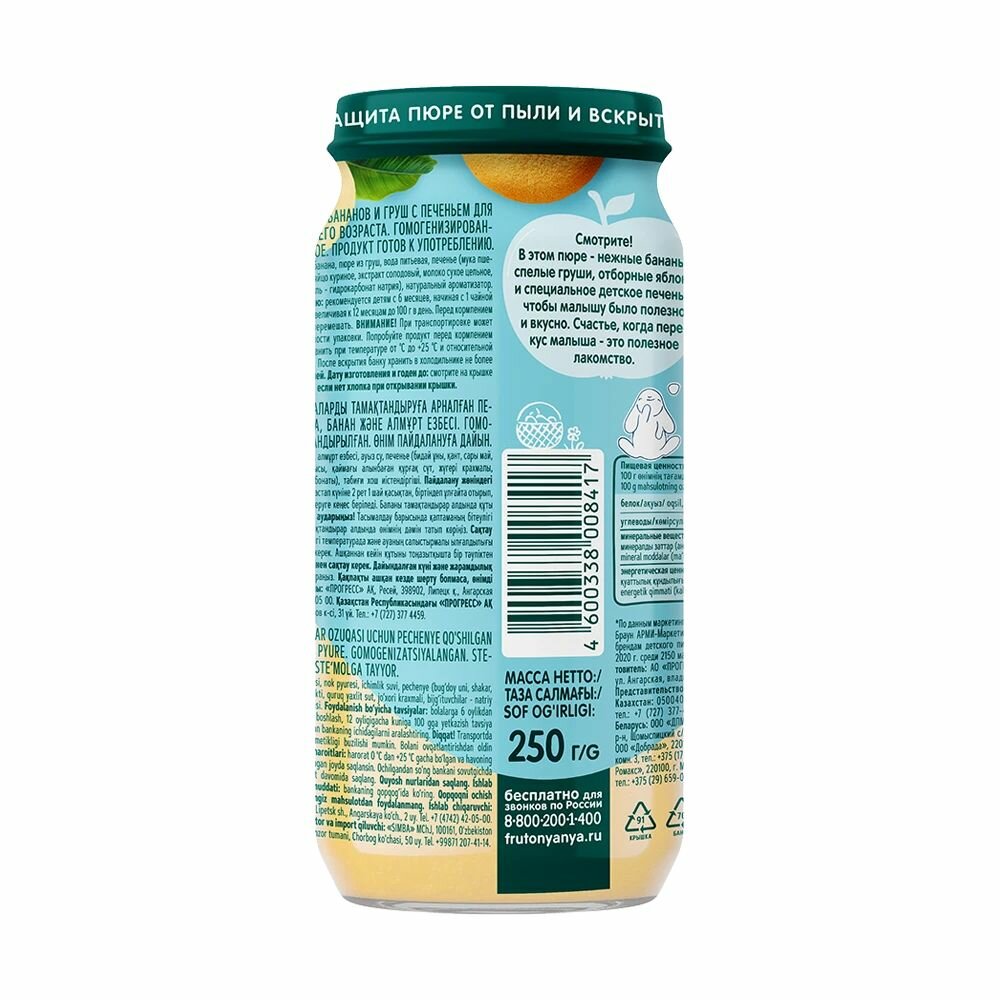 Пюре фруктовое ФрутоНяня с 6 месяцев, яблоко, банан, груша и печенье, 250 г, 3 шт интересное: