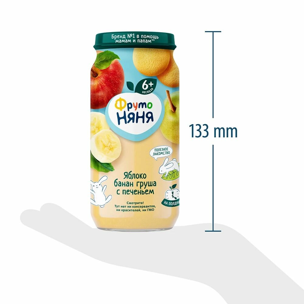 Пюре ФрутоНяня из яблок, бананов и груш с печеньем, с 6 месяцев, 250 г, 12 шт.