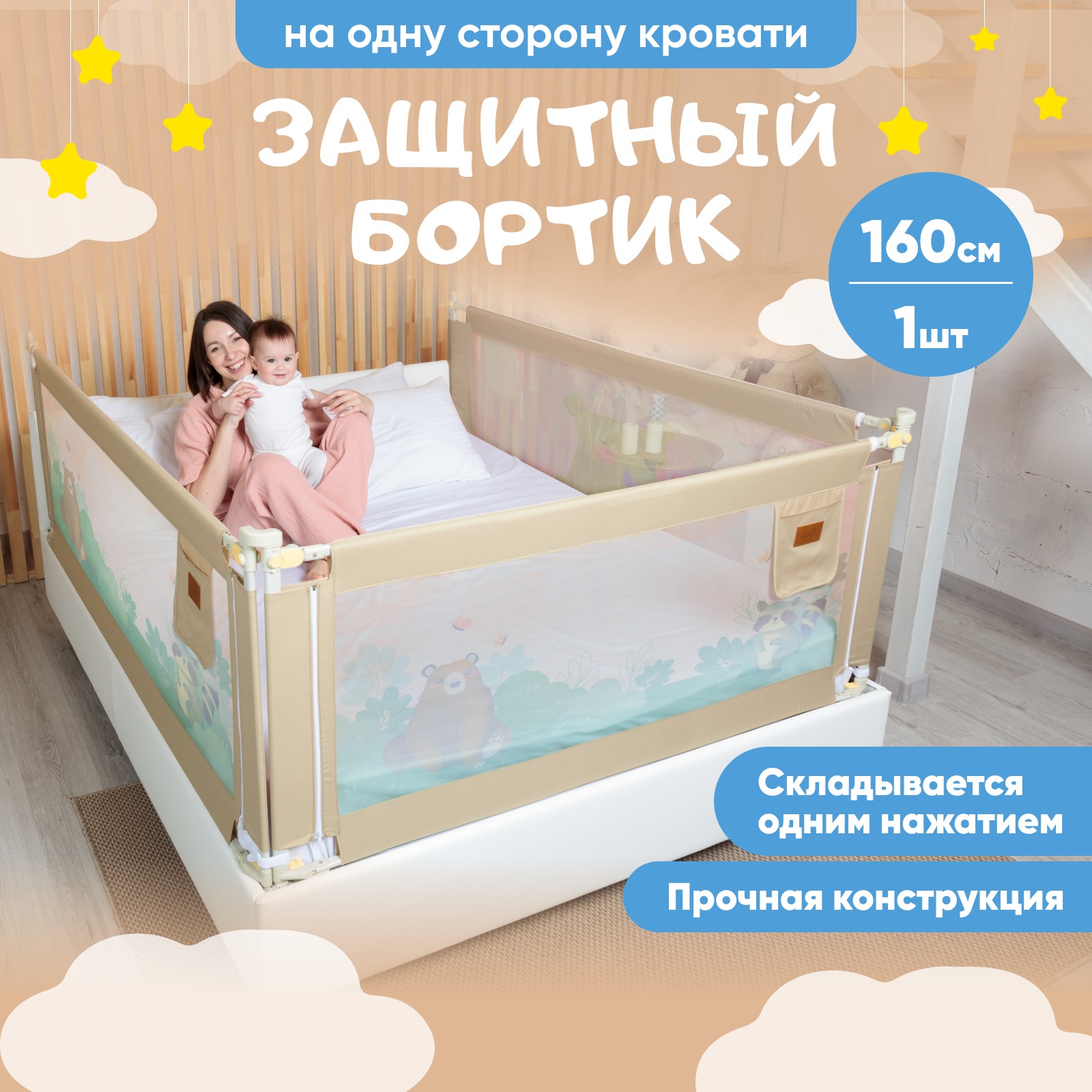 Барьер защитный для кровати от падений, бортик безопасности малыша 160 см SOLMAX, бежевый