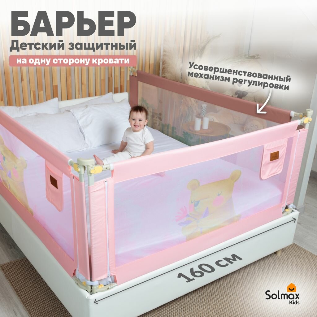 Барьер защитный для кровати от падений, бортик в кроватку для малыша 160 см SOLMAX, розовый интересное: