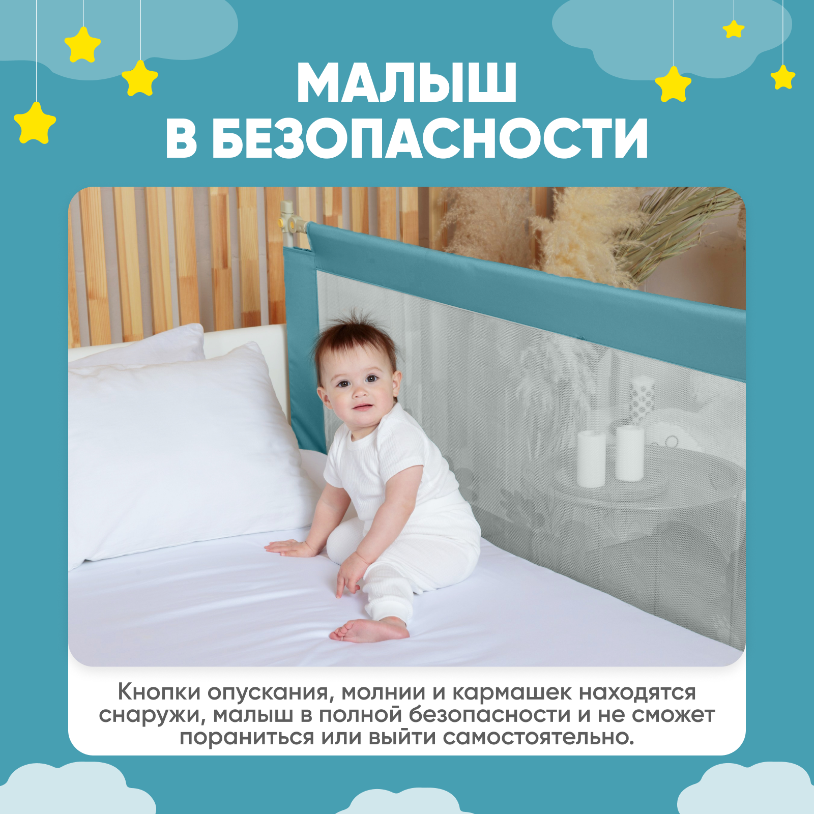 Защитный барьер безопасности малыша для взрослой кровати размер 200см SOLMAX