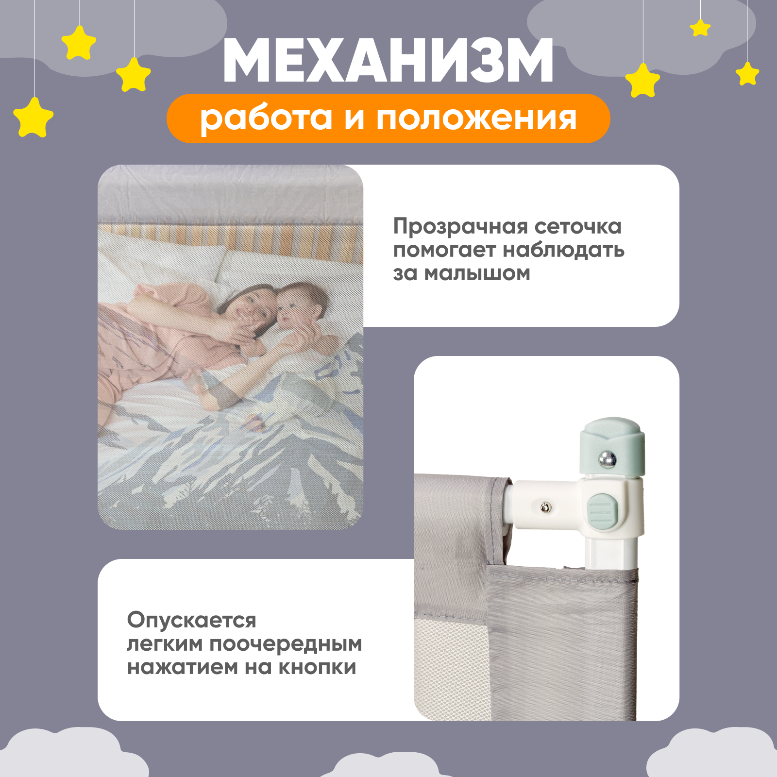 Барьер защитный для кровати от падений, бортик безопасности малыша 160 см SOLMAX, серый