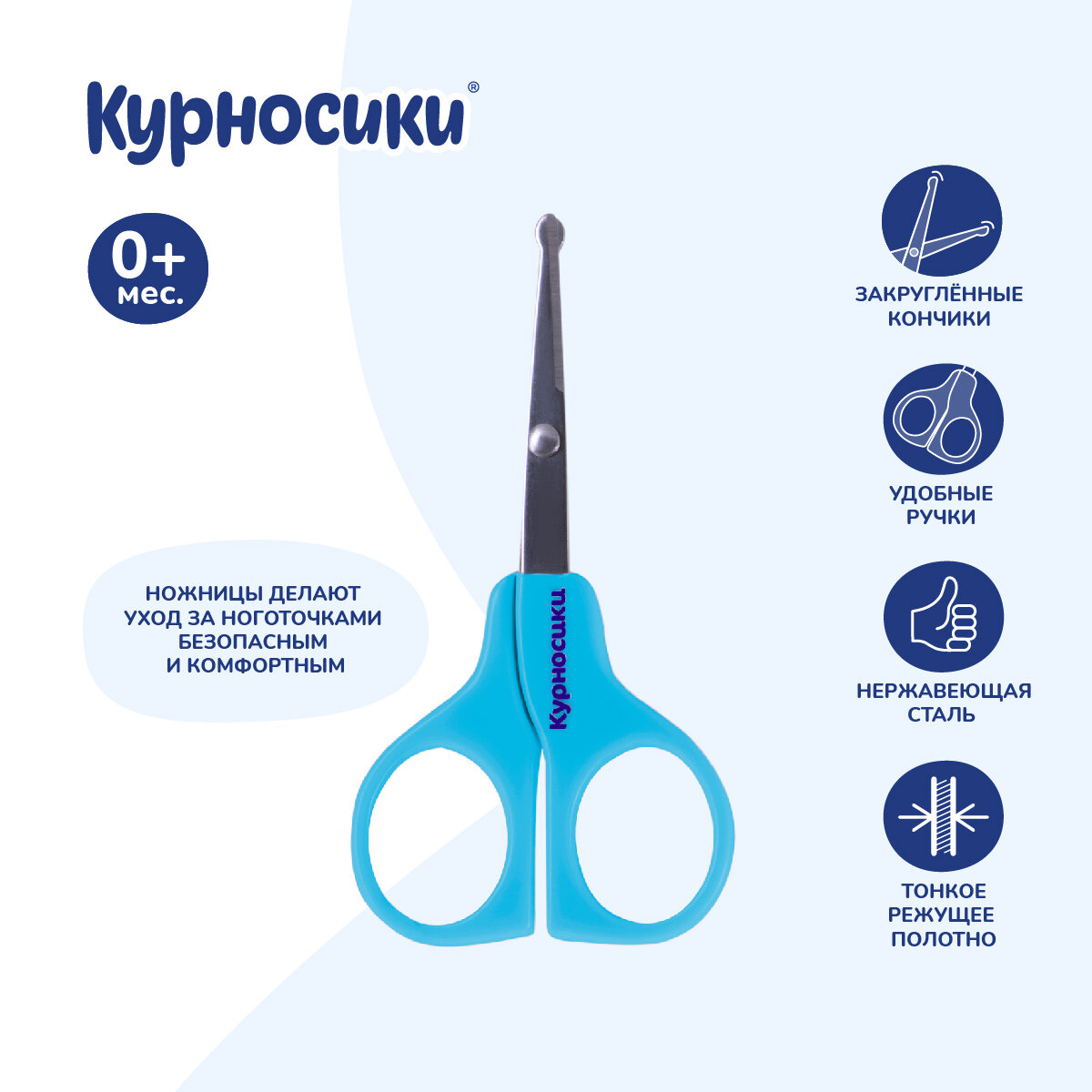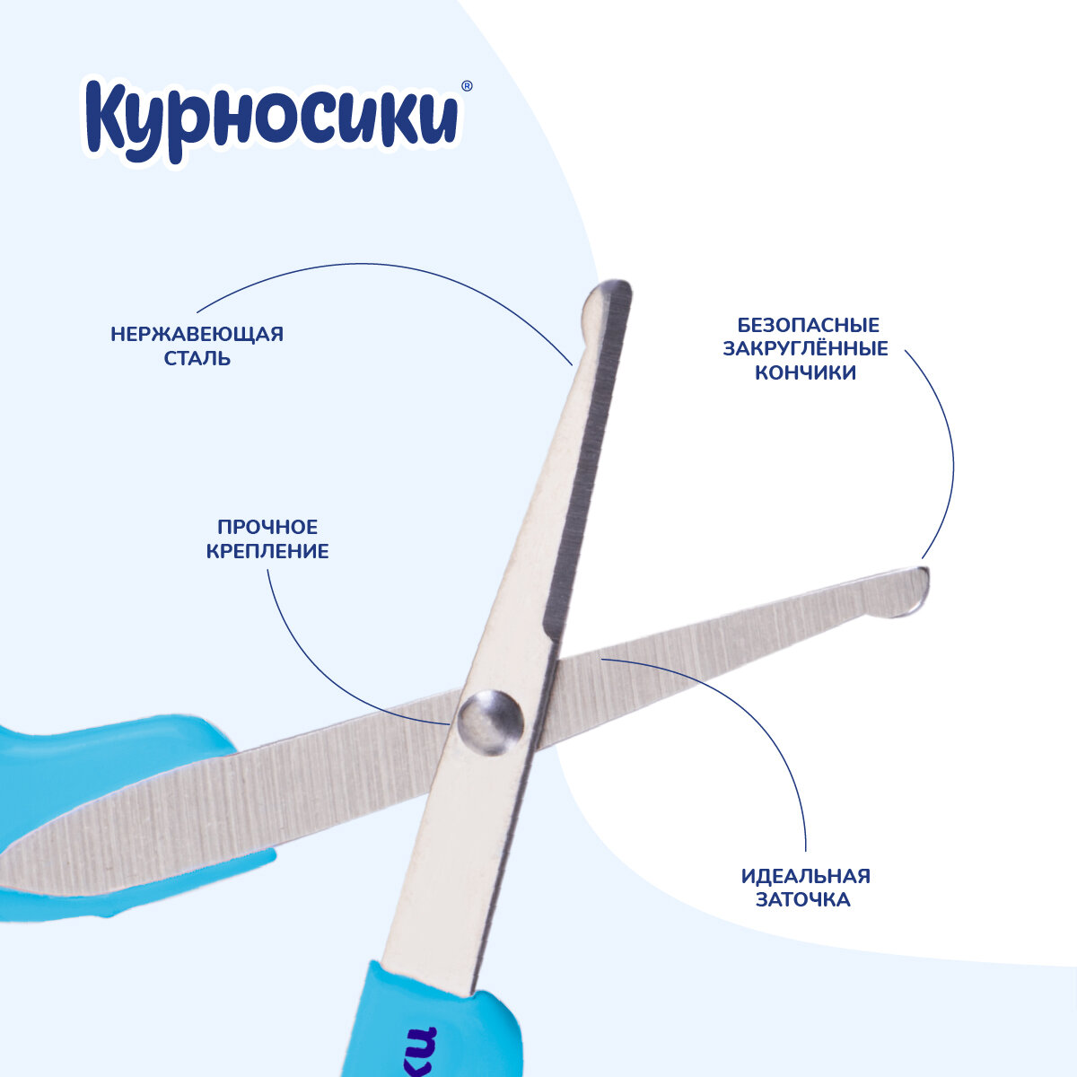 Ножницы для новорожденных детские для ногтей Курносики 0+ мес, с закругленными концами, голубые