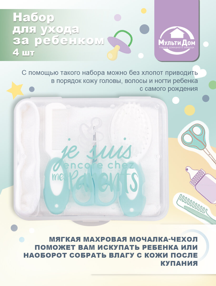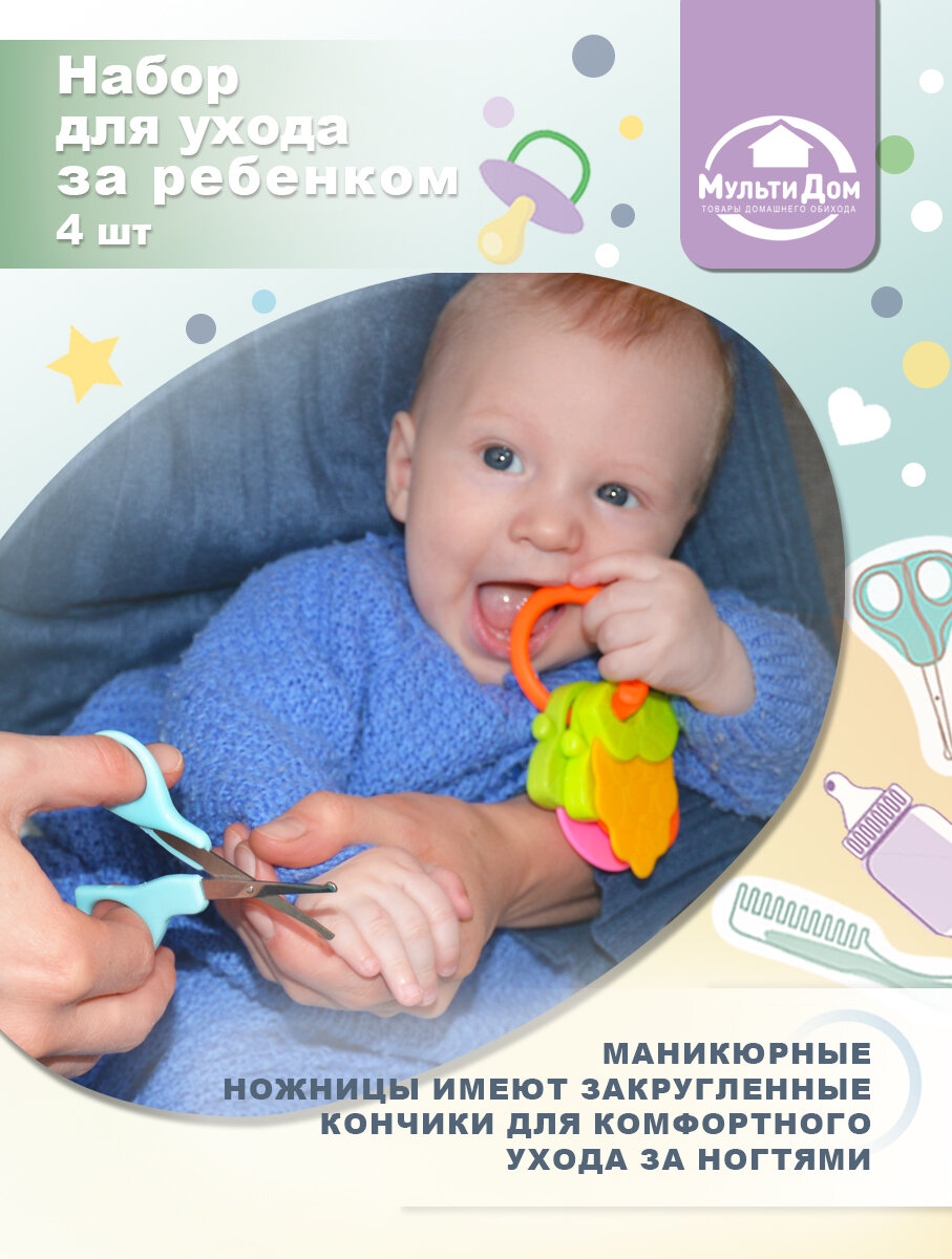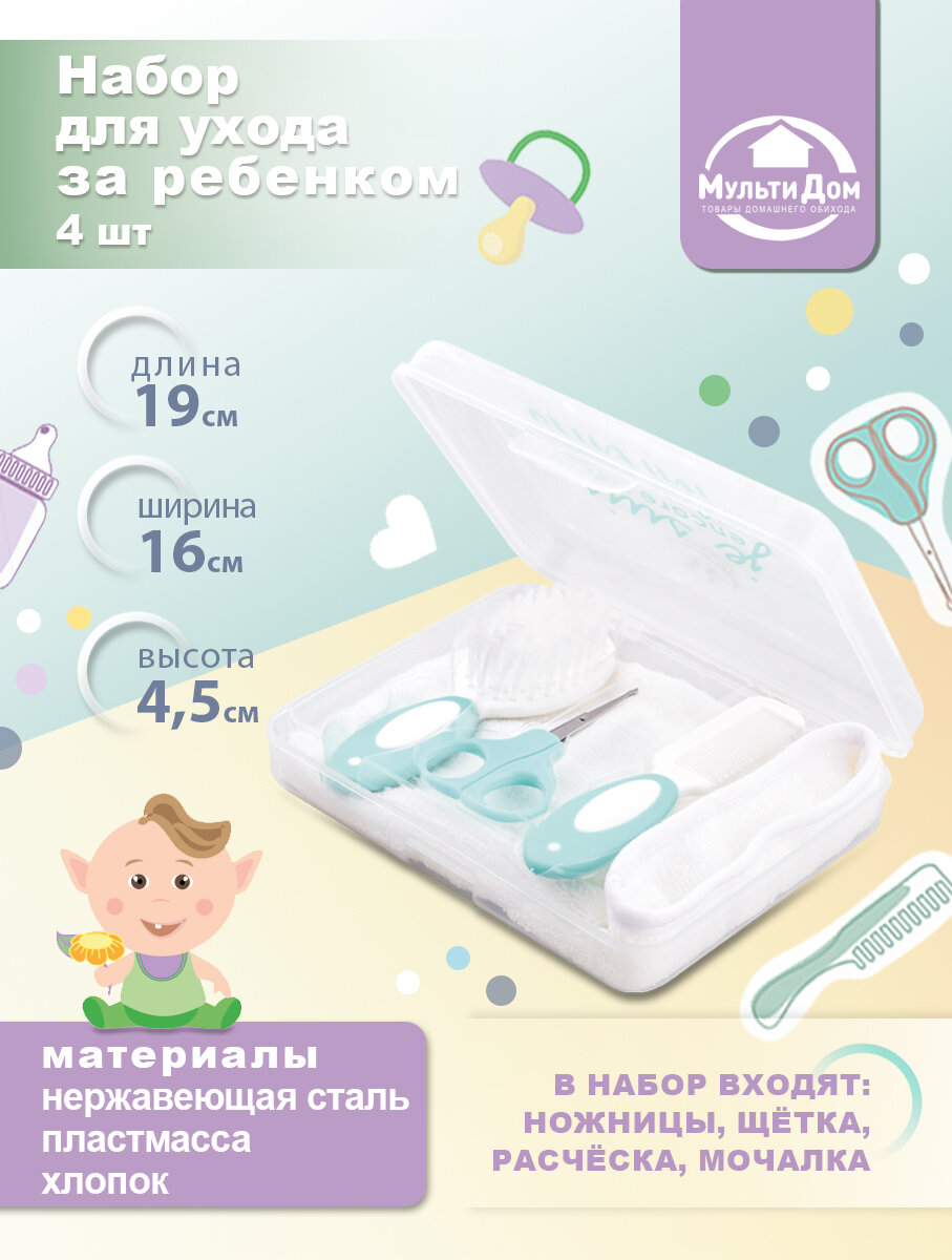 Набор для ухода за ребенком, 4 шт, ножницы, щетка, расческа и мочалка интересное: