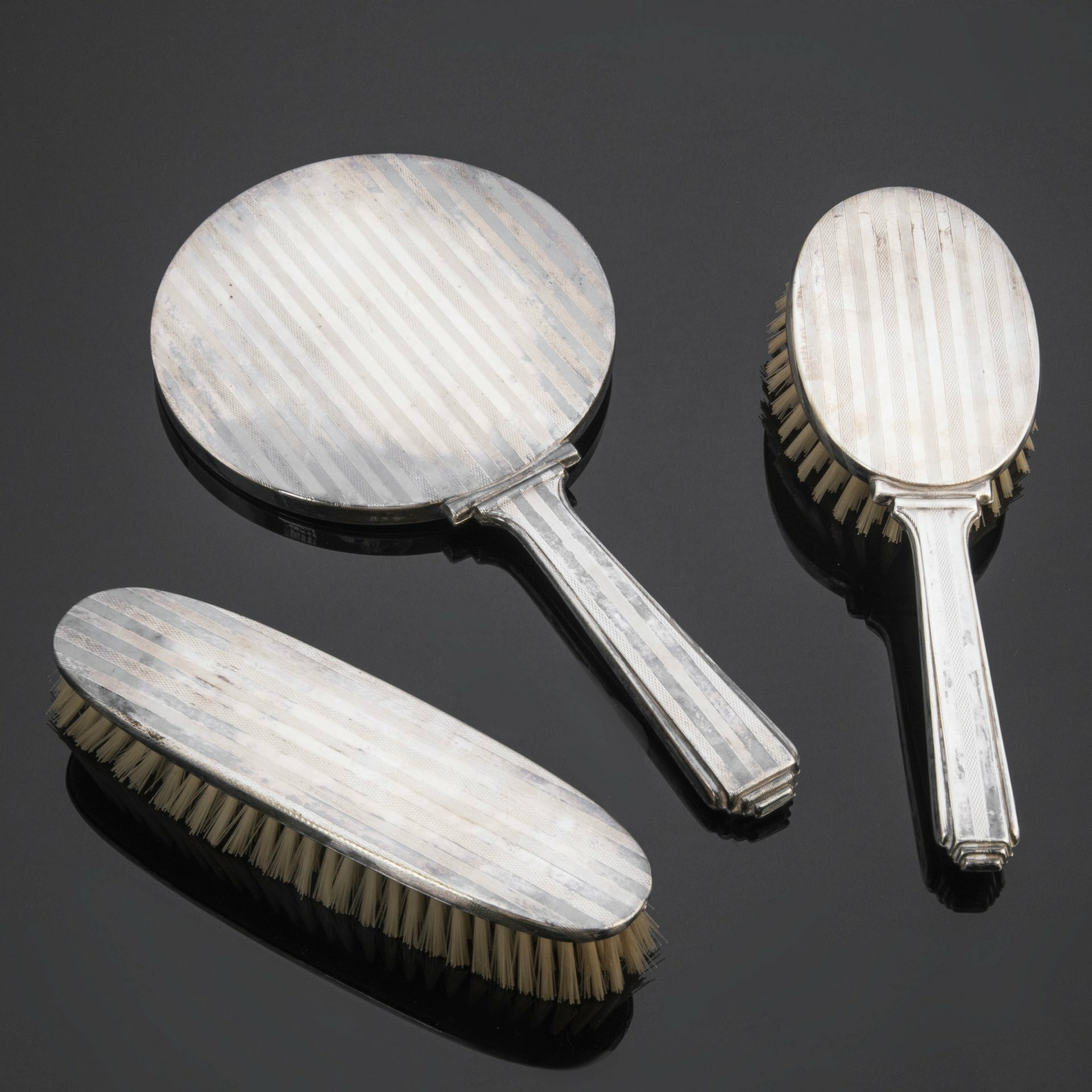 Купить Набор для туалетного столика: расческа, щетка и зеркало, металл, дерево, ворс