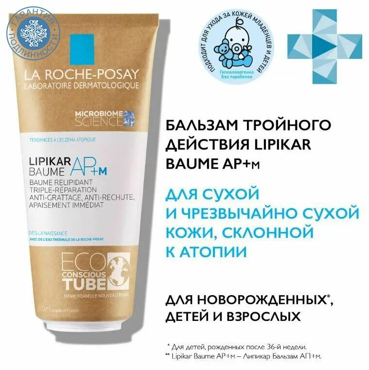 Купить La Roche-Posay Липидовосполняющий бальзам тройного действия для лица и тела в новой эко-упаковке AP+M 200 мл