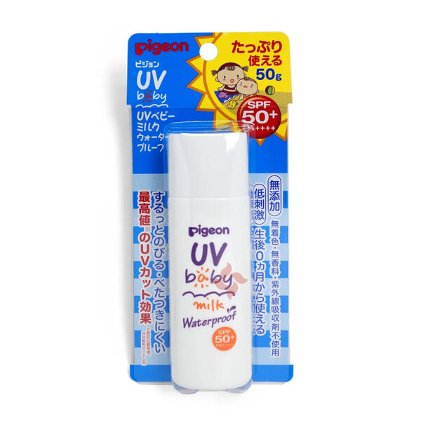 PIGEON Солнцезащитное молочко UV SPF50 детское для лица и тела, возраст 0+, бутылка 50 гр. интересное: