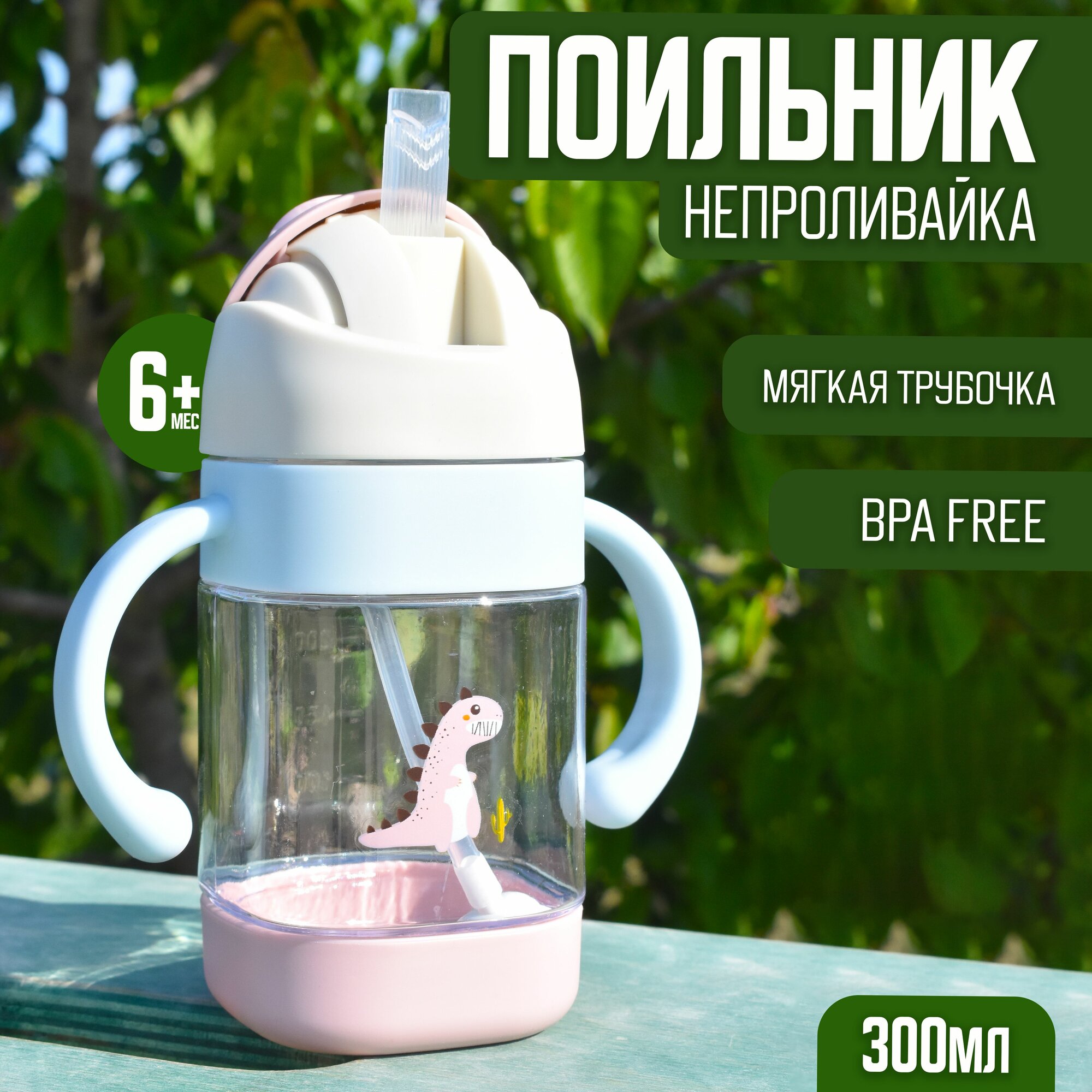 Детский поильник с трубочкой 300 мл. "Дино" (розовый) интересное: