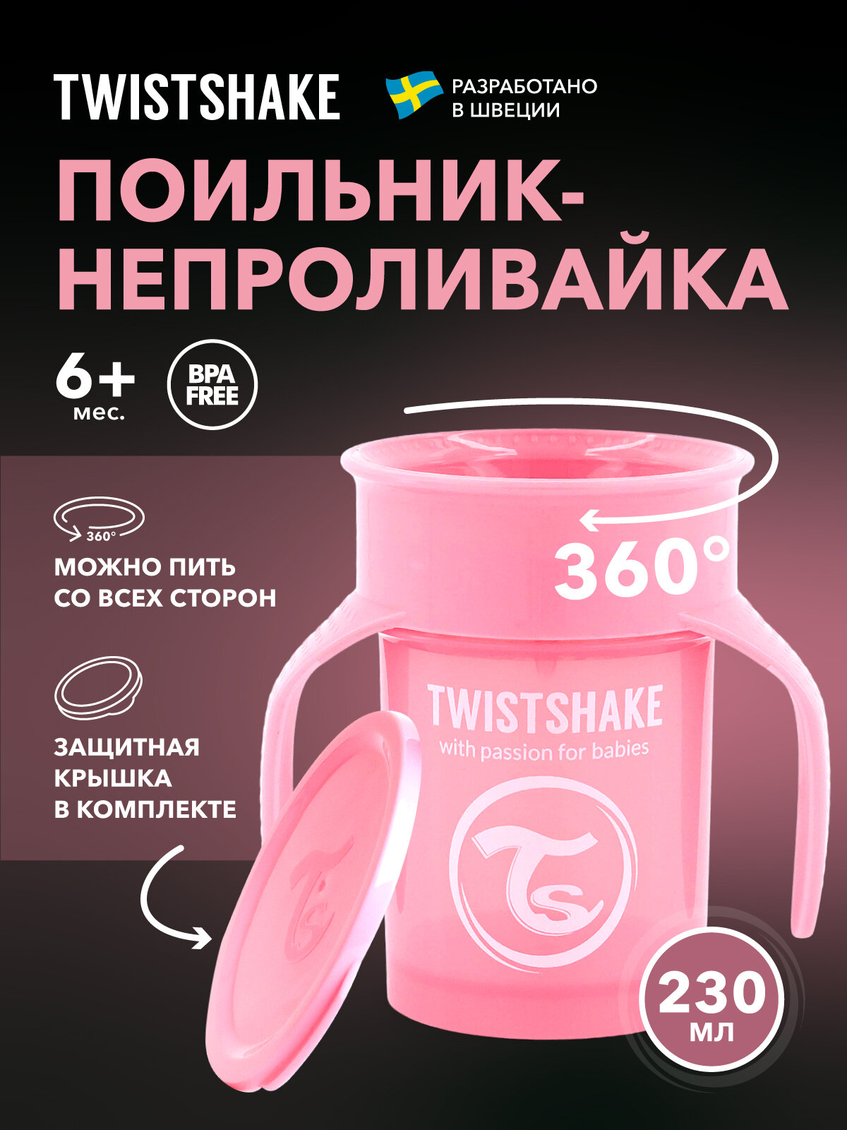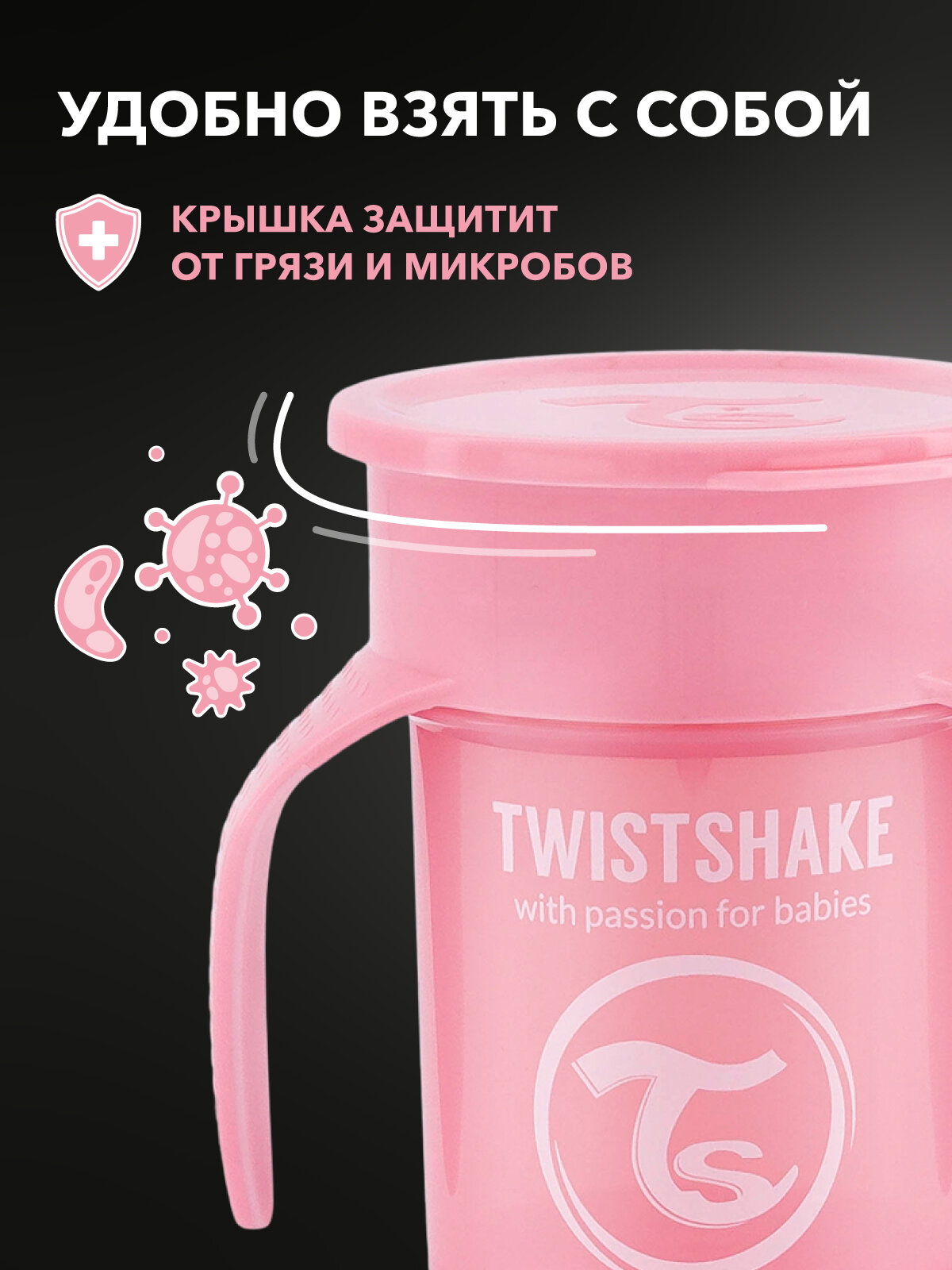 СохранитьДетский поильник непроливайка Twistshake 360 cup 230 мл. Пастельный розовый (Pastel Pink). Возраст 6+ мес. интересное: