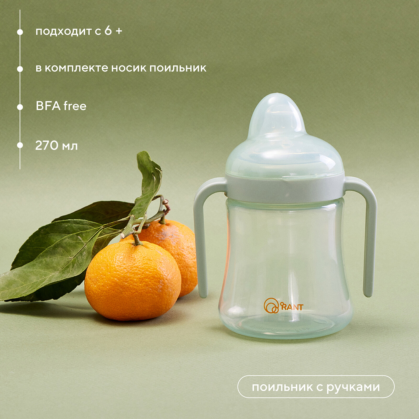 Купить Поильник с ручками и силиконовой соской 270 мл. 6м+ (арт. 2002) green