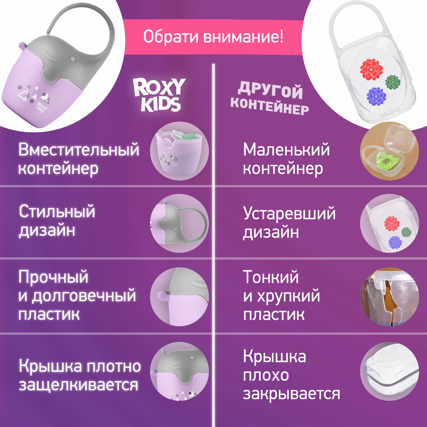 Ниже Вы можете прочитать отзывы на Контейнер для сосок и пустышек "Слоник" цвет сиреневый ROXY-KIDS, ознакомится с подробными характеристиками, посмотреть интересные обзоры и фотографии на Контейнер для сосок и пустышек "Слоник" цвет сиреневый ROXY-KIDS.