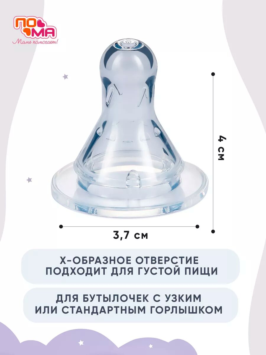Соски ПОМА "Для густой пищи", силикон, 2 шт./уп, для бутылочек, от 6 мес.