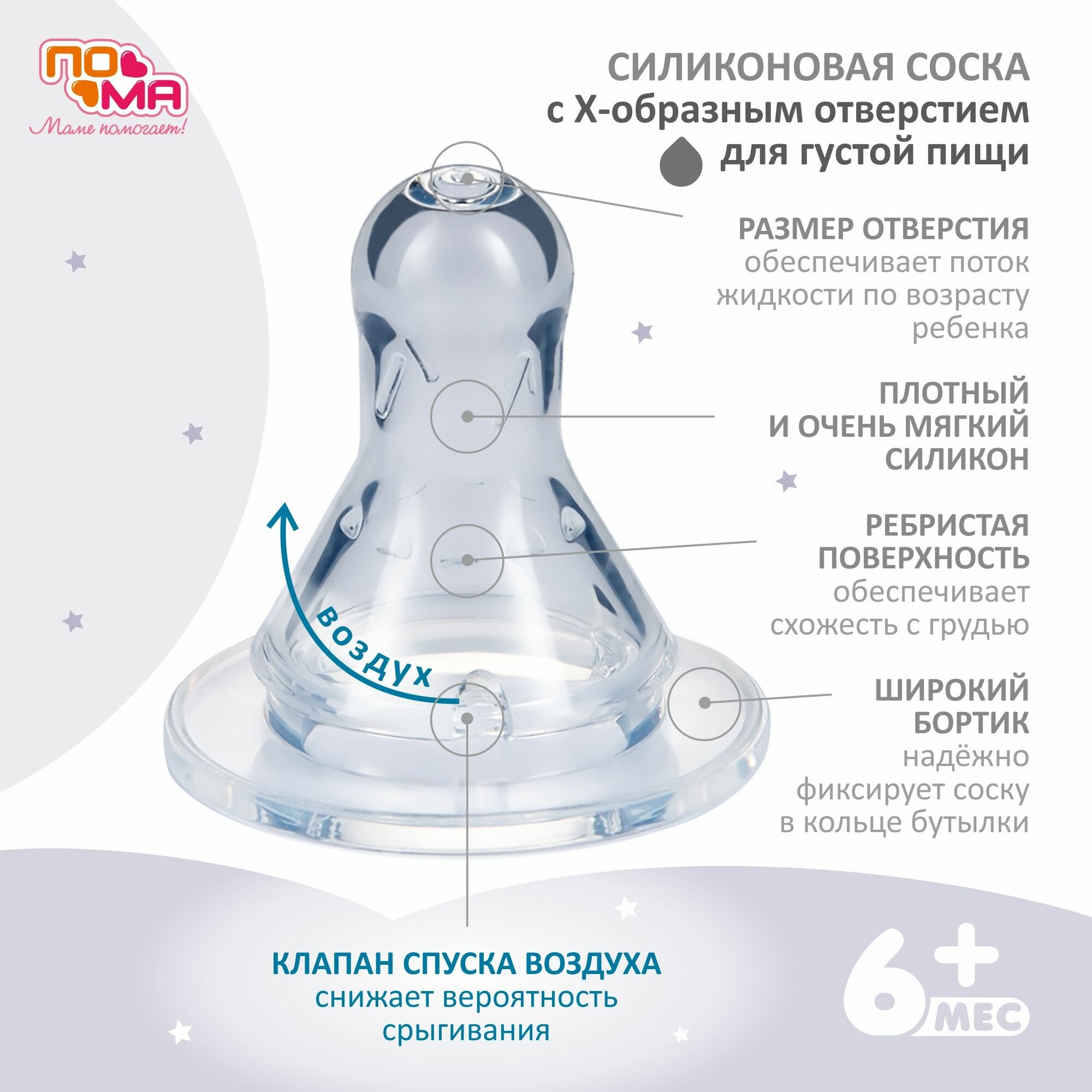 Соски ПОМА "Для густой пищи", силикон, 2 шт./уп, для бутылочек, от 6 мес.