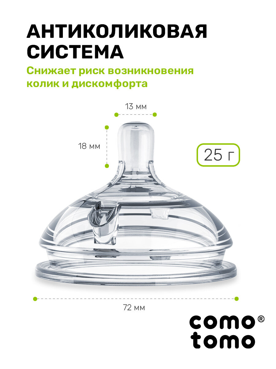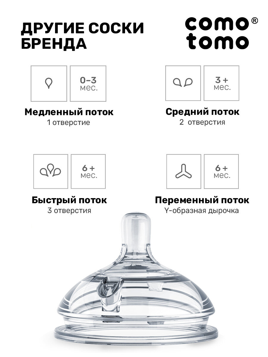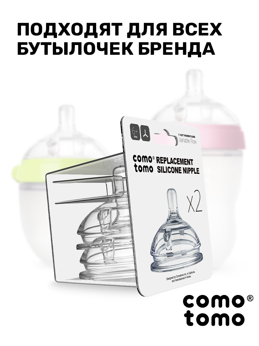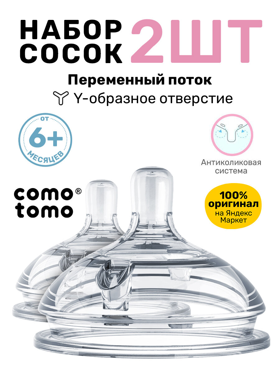 Соска для бутылочек Comotomo Natural Nipple Packs силиконовая для каши 6+ (Y) переменный поток интересное: