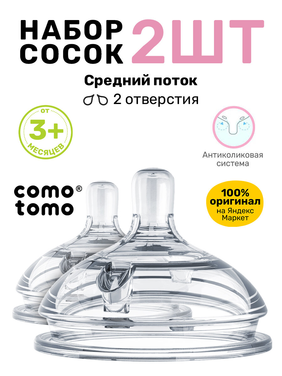 Соска для бутылочек Comotomo Natural Nipple Packs силиконовая набор от 3 мес средний поток интересное: