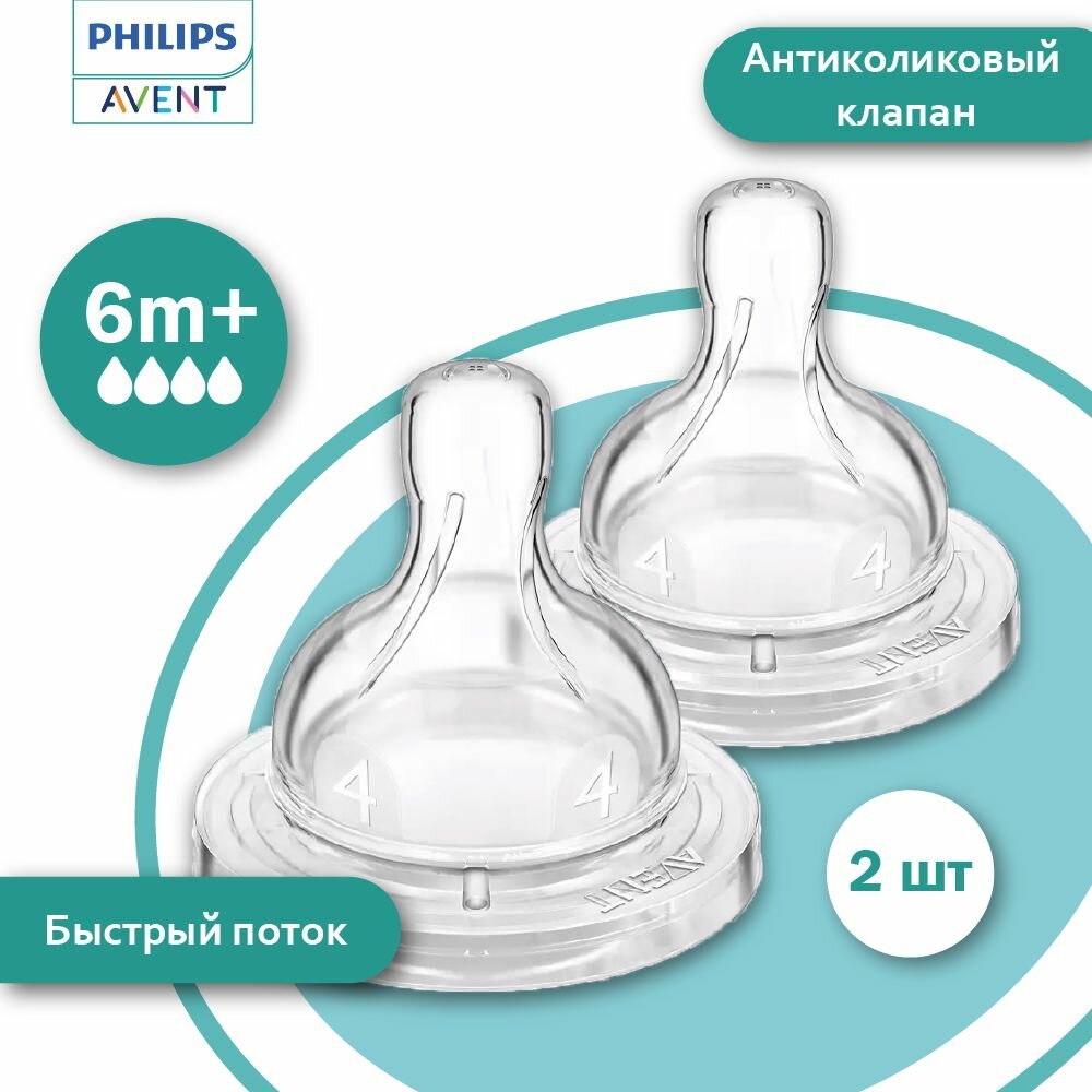 Philips Avent Соска силиконовая быстрый поток Anti-colic 6+ SCY764/02 2 шт