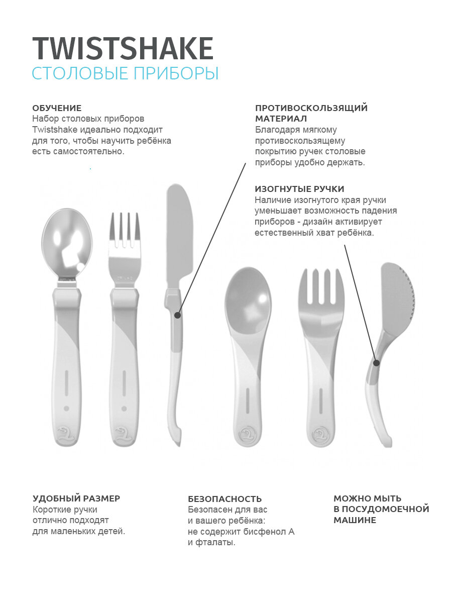 Набор приборов Twistshake. Белый. Возраст 6+m. Арт. 78207 интересное: