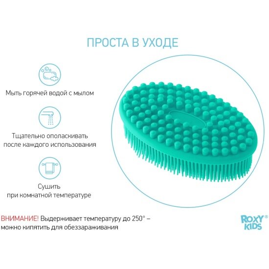 Губка антибактериальная детская для тела для купания силиконовая от ROXY KIDS. цвет мятный интересное: