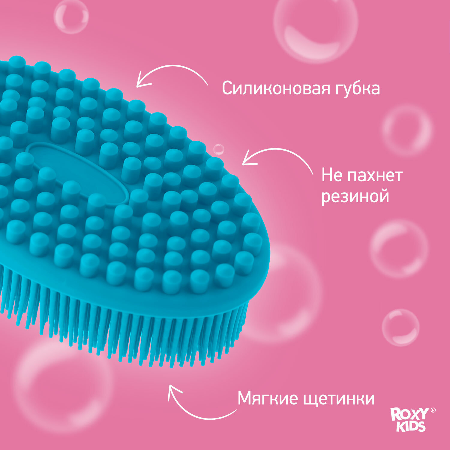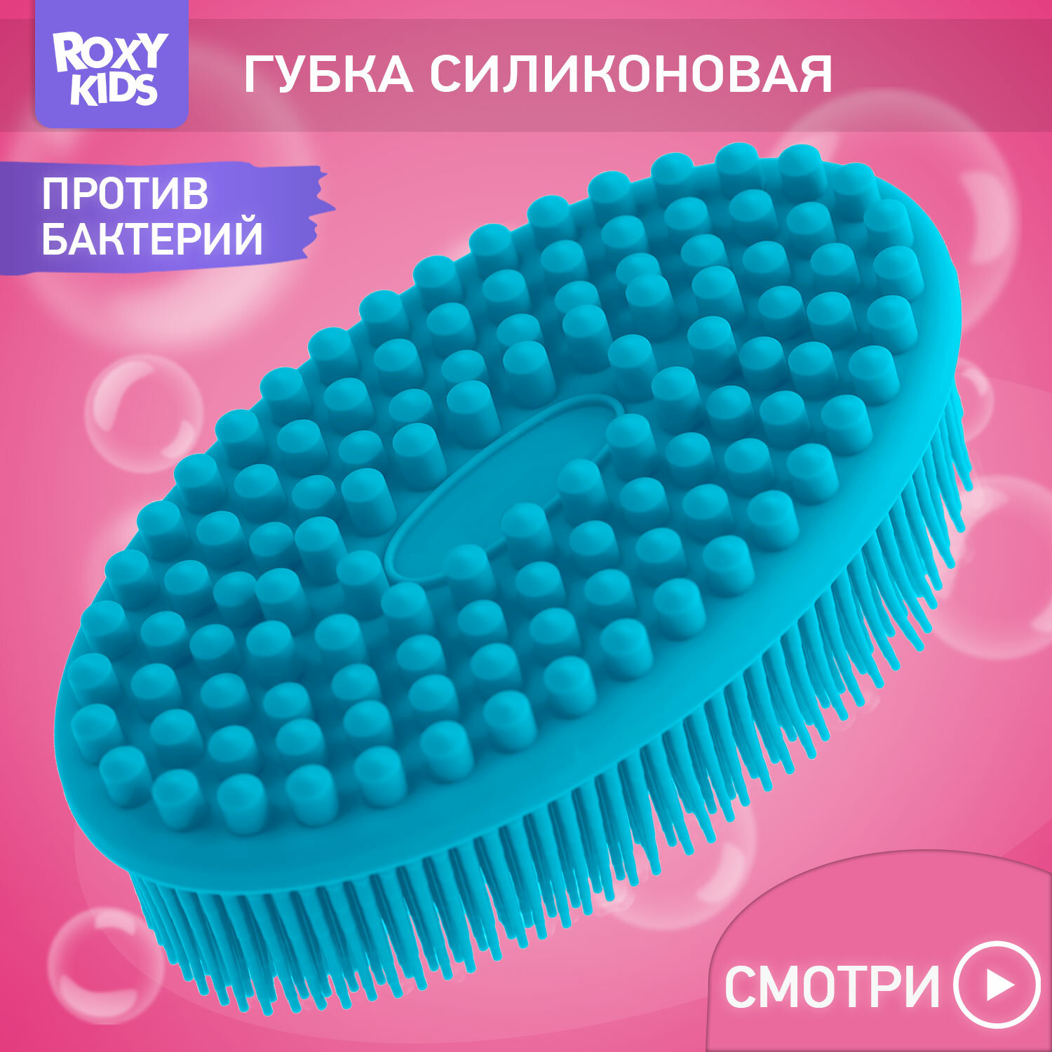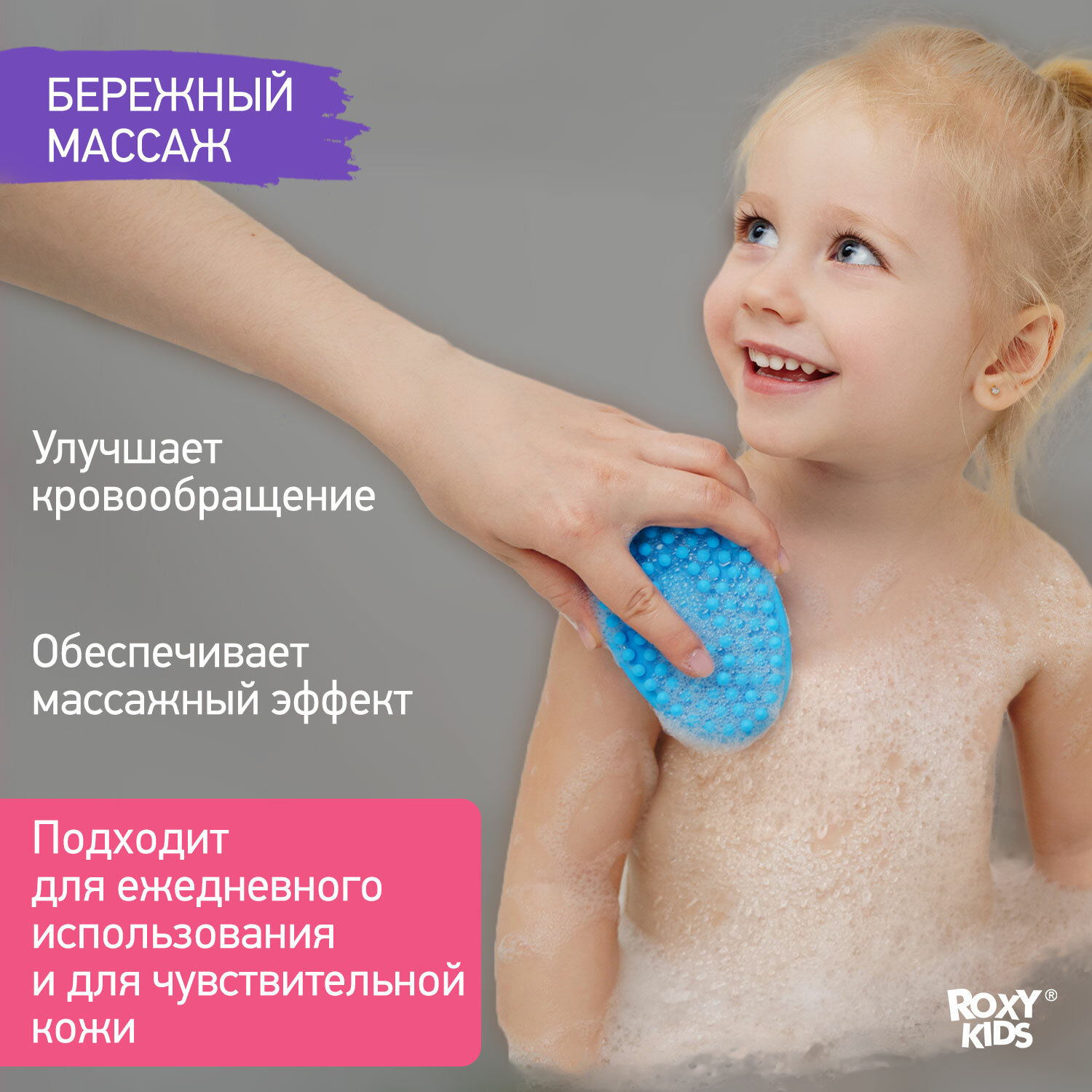 Губка антибактериальная детская для тела для купания силиконовая от ROXY KIDS. цвет голубой интересное: