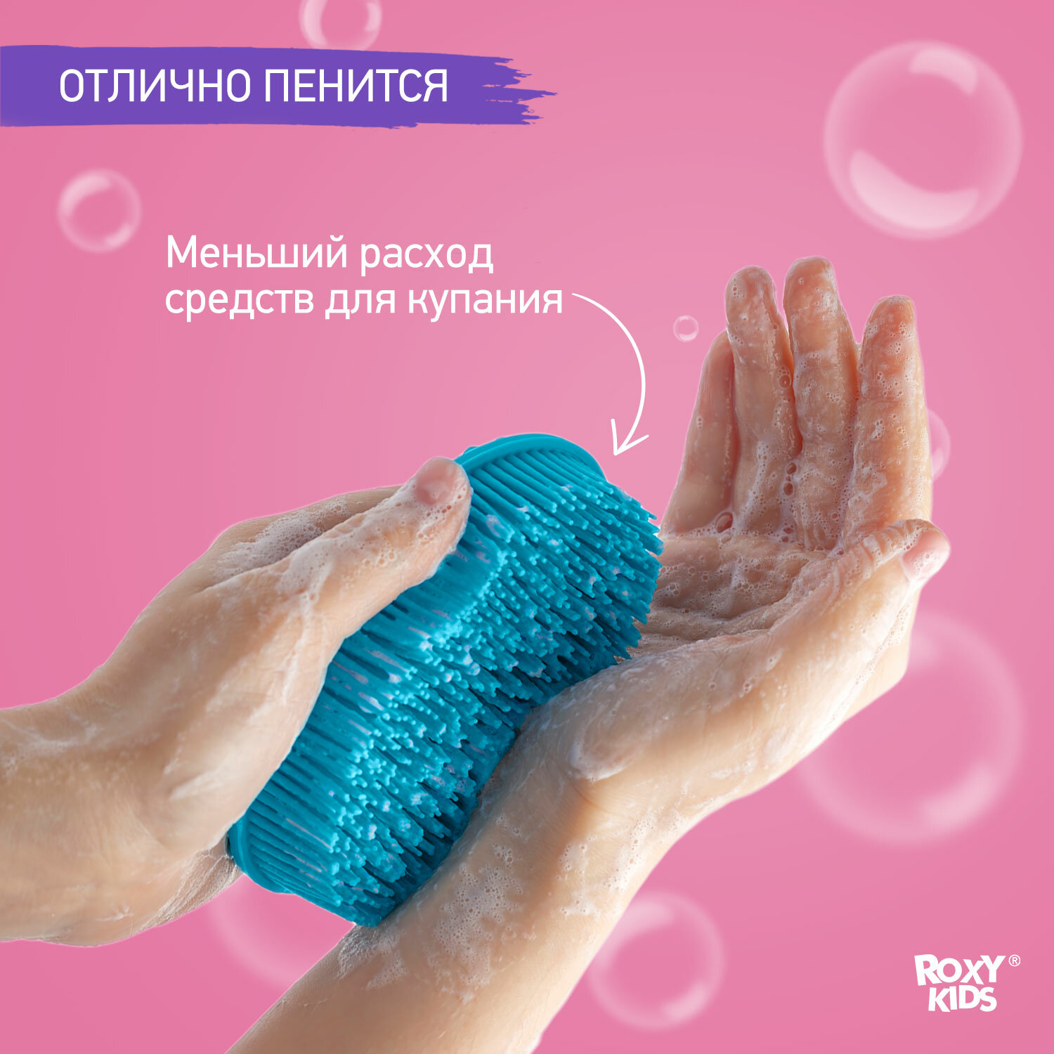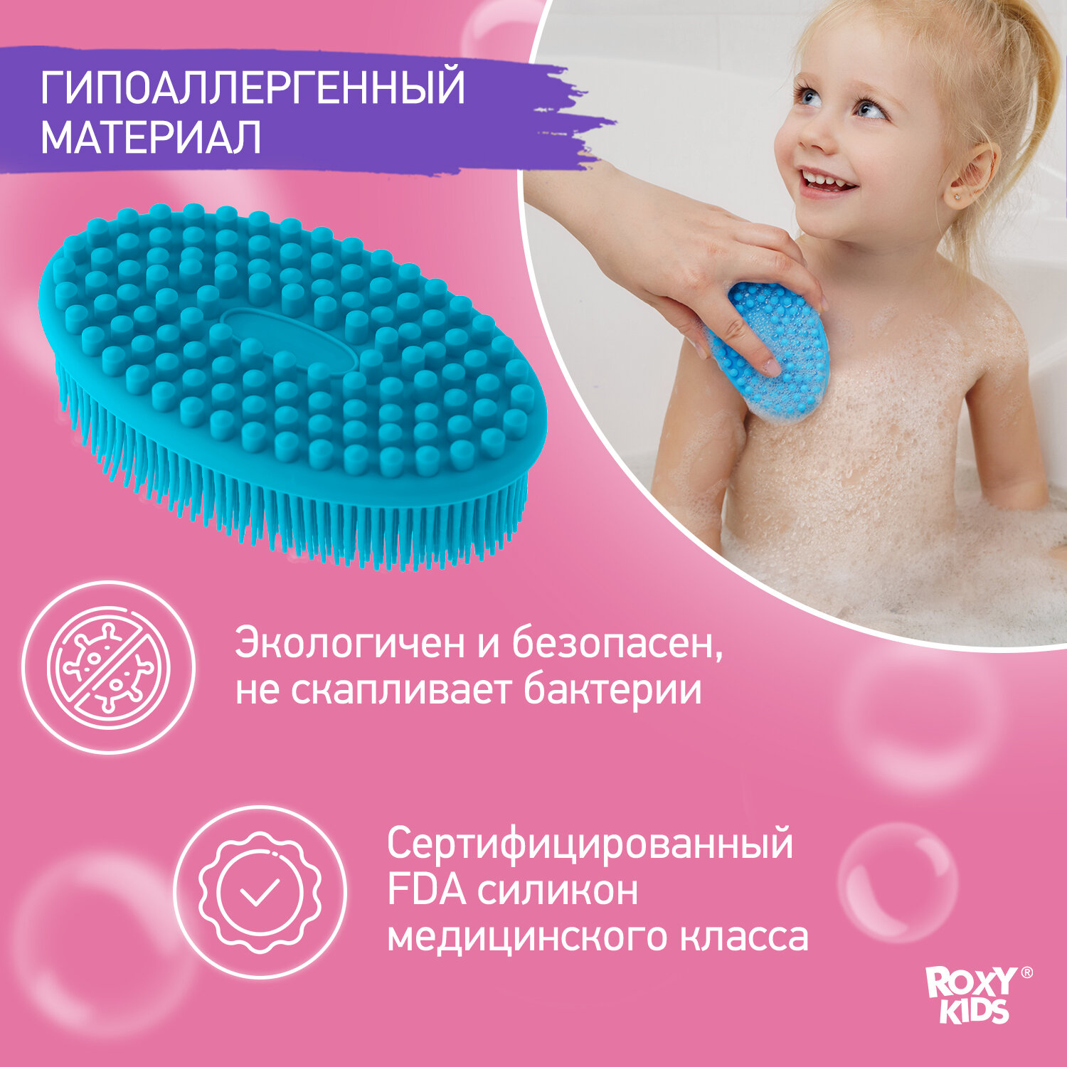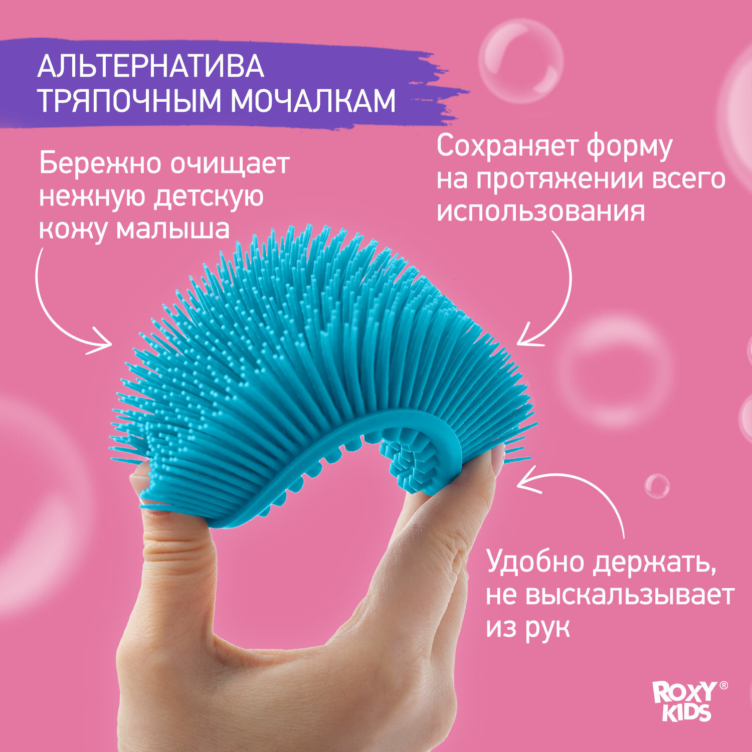 Губка антибактериальная детская для тела для купания силиконовая от ROXY KIDS. цвет голубой интересное:
